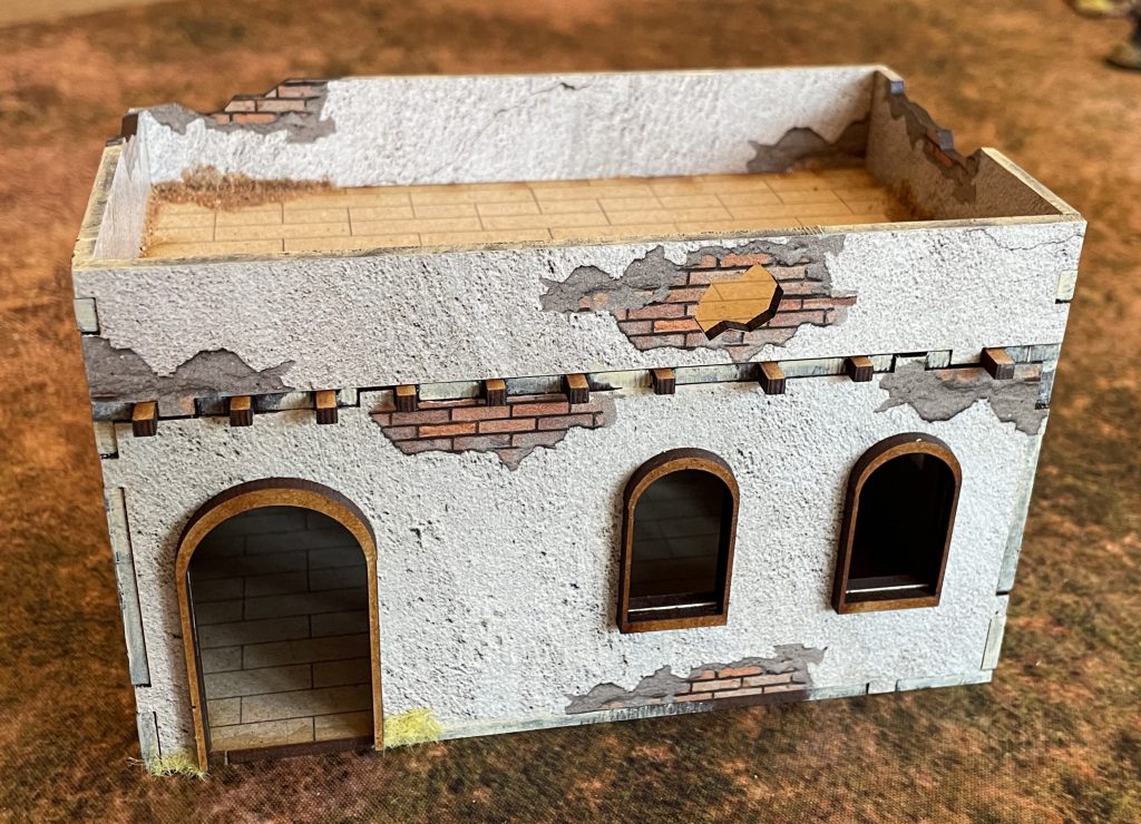 If you’ve already got a fair bit of terrain in this kind of style, you’ll be pleased to know this works alongside other major ranges. It does stand as a kind of half-way house between the bare MDF of the simplest terrain – like the Warbases House below – and the thick hard plastic of the Renedra Mud Brick House, but I think looks good alongside both.