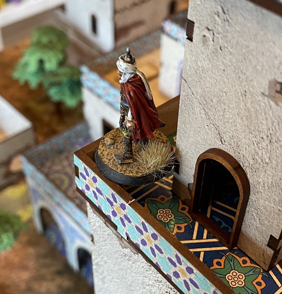 The Medina range is a nine-building set comprising seven houses (four of them two-storey), one large mosque and a minaret. The set – as reviewed here – is available as the Medina Terrain Pack on the Bandua site. At around £150 at the time of writing (€169.99), it’s a fairly chunky investment that promises a full table – or more – of high quality pre-printed terrain. It will work for a variety of Historical periods (anything from about 700-present) in North Africa and the Middle East, in addition to fantasy, science fiction settings and weird historicals.