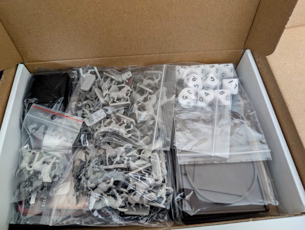 The Kickstarter funded a new two player starter box which I will be unboxing and reviewing in this article. The starter set includes everything you need to play a two-player ‘skirmish’ level game of By Fire and Sword. In By Fire and Sword there are two levels of play: Skirmish, which sees around 4 to 6 units a side on a 4ft by 4ft table, and Task Force Level (on a good old 6 by 4) which is 8 or 9 units, The starter box provides two Skirmish level forces and a game at this level will take around an hour.