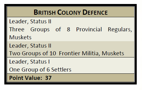 In terms of Sharp Practice, they’re the main part of a ‘settler defense’ force. The author put together some basic forces for each period and they’re the ‘regulars’ so to speak in a force defending settlements from French and Indian attacks. We’ve used these forces as we’ve started playing the game but they’re not the end-all be-all – you can add to them since TFL also included a points system.