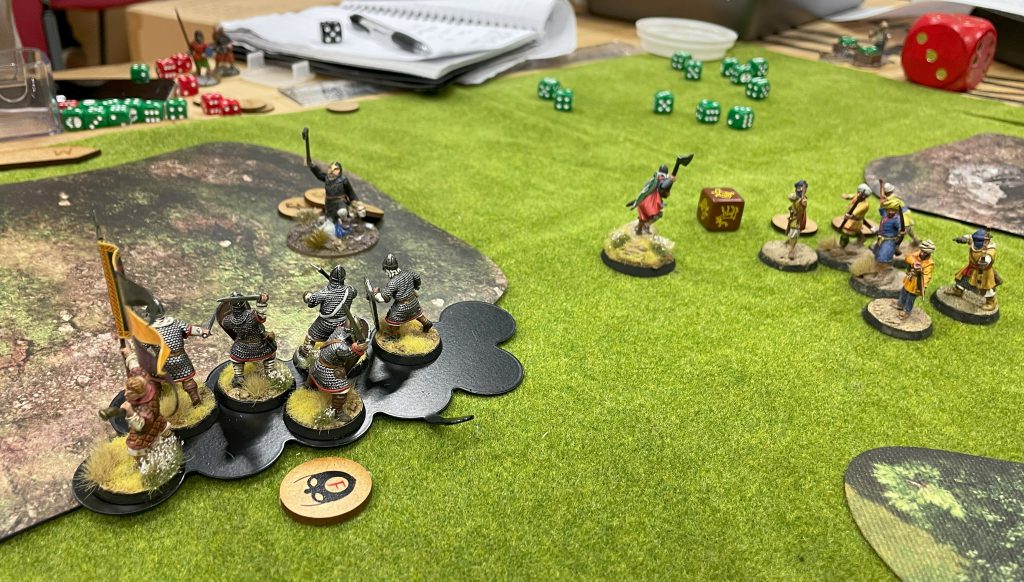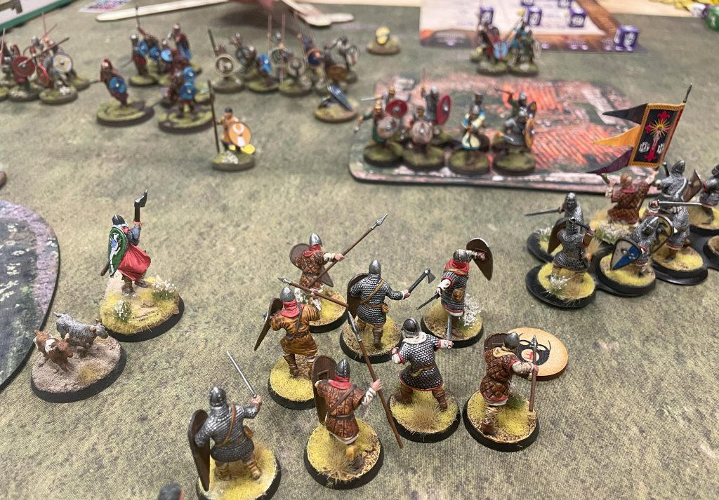 I was pleased overall with my gameplay – two wins and four losses might not sound like a good record, but for me it was an almost unbelievable result. I ended up 18th (out of 23) which was a little disappointing – one or two more bonus points would have seen me up in the top half! Wherever I ended up, I was pleased to see that in at least three of the games I’d put together a plan and executed it well. There was only one game where I entered without a plan and suffered as a result. I don’t think I fell into many obvious trap choices with my battle boards and could certainly see my improvement as a Saga player from the practice games. I’ll not be challenging top tables any time soon but I feel I’ve learnt enough to crawl my way to at least the chance of a victory, even when playing Bair.
