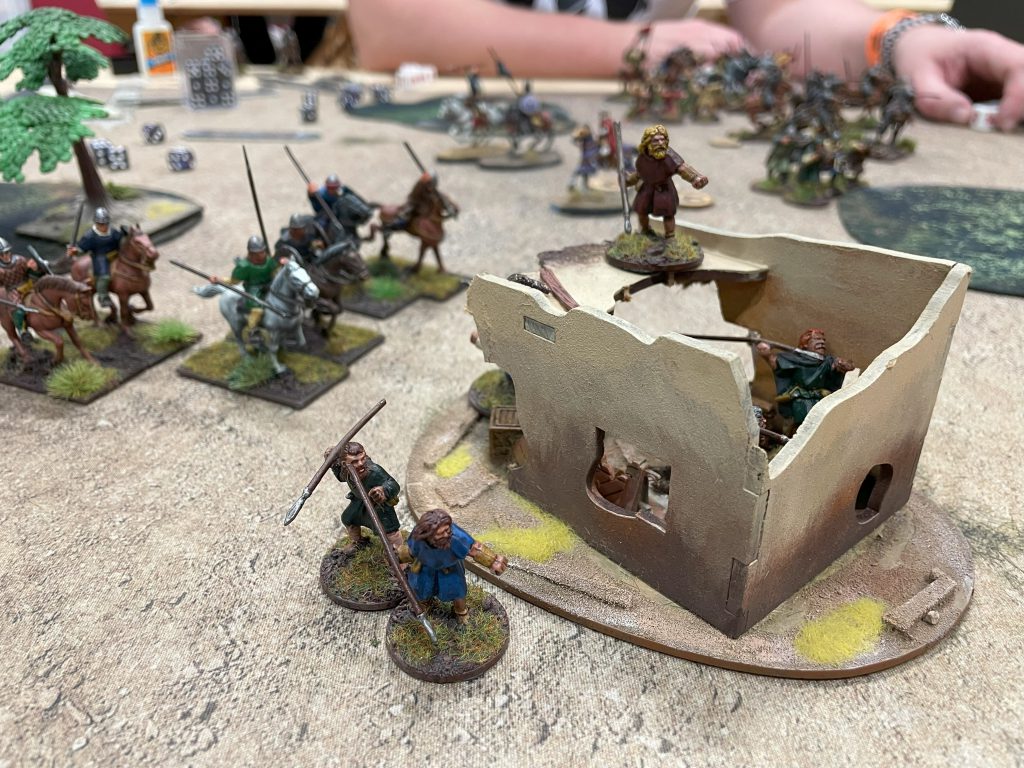 Yes, it was a deeply unwise plan, I know. It took me too long to clear off the central objective, despite killing the Warlord, Hearthguard and Pilgrims. I relied on composite bow shooting to do so in an attempt to preserve my own forces for high-scoring later turns. This meant what should have been a one turn job to shoot and charge everything off the central hill turned into a three turn slog. I just wasn’t decisive enough and in the end couldn’t make up the point deficit. Ian suggested some ways I could score extra tournament points in the final turn (thanks Ian!), so despite the 27-7 loss, I did pick up two from the game, putting me in firmly middle-table territory going into the final game of the weekend.