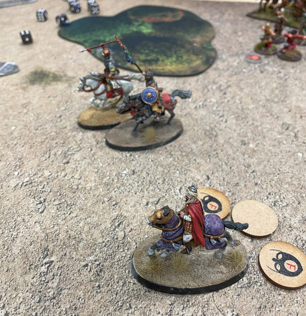 What a puzzle this game was. Chris was playing Spanish from Age of Crusades – highly mobile, javelin armed cavalry and tricky infantry along with the mailed fist of western knights. My list wasn’t dissimilar, trading javelins for composite bows. The scenario – Wolf Pass – rewarded keeping your units alive and getting them into the enemy deployment zone. With two light, fragile cavalry armies, this could have been a swirling melee, but ended up a cautious cat-and-mouse affair of shifting skirmishers and feigned retreats.