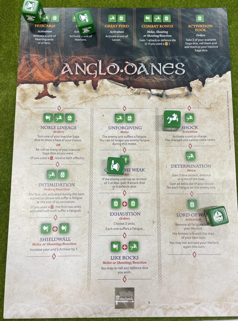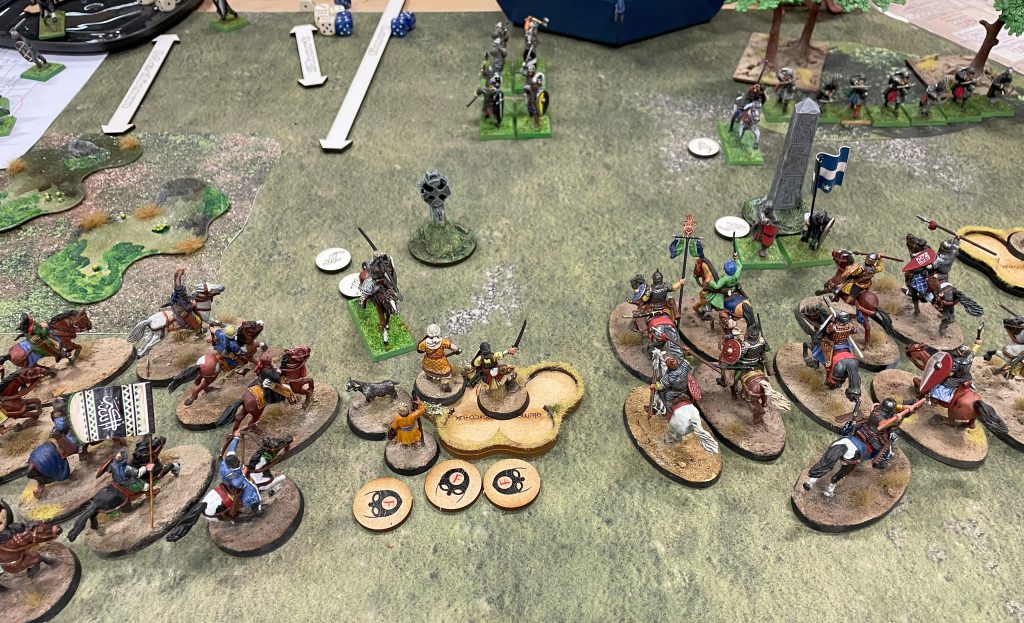 Game one of the Tournament was guaranteed to be using the Clash of Warlords scenario from the Saga rulebook. This is a scenario that rewards getting right up into the enemy’s face and killing as many of them as possible. Quite a nice one for my Anglo-Danes, who could deliver a lot of attack dice as long as the enemy stayed close enough to charge on a single activation.