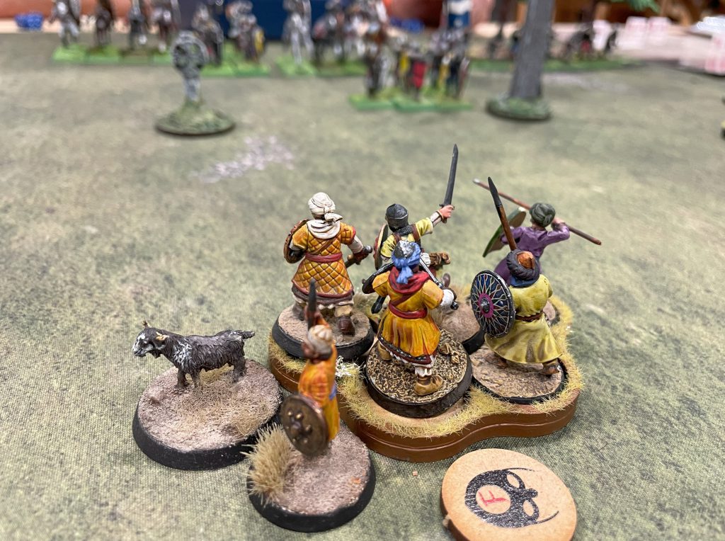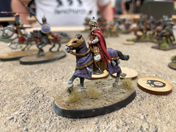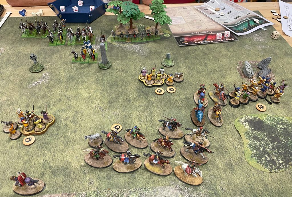 The mostly-mounted Saracen list posed some problems for the scenarios we were going to play on Day Two as two out of three scenarios would focus in on terrain in some way – either moving objectives that acted as terrain or occupying terrain for victory points. I was determined to play with what I’d brought, though, so come hell or high water those horse were going on the board. I entered play with:
