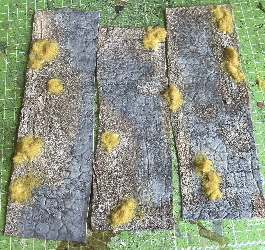 Once that was dry – and I’d advise leaving it a good 48 hours – I peeled them off and stood models on them to see how they looked. The answer? Narrow. Might work as paths.