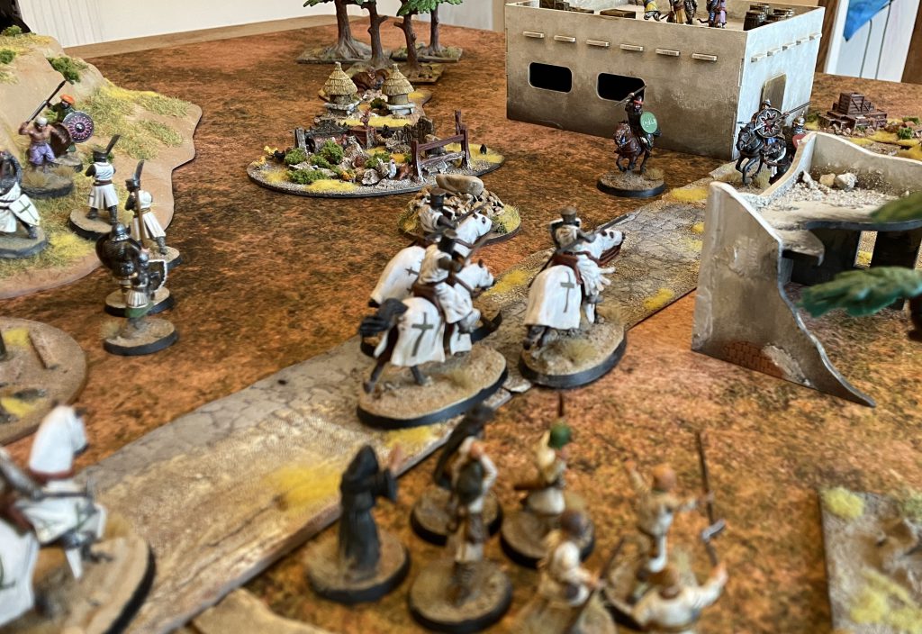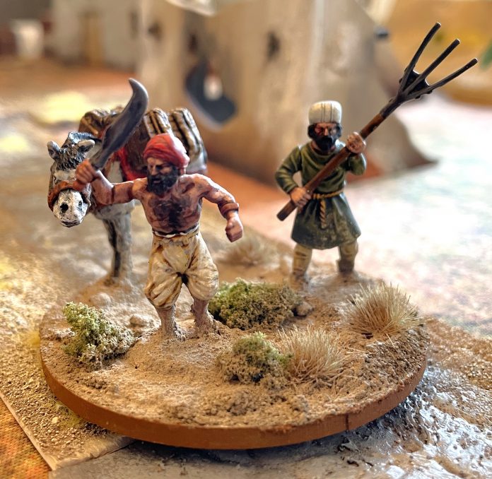Last time we left our village of Nakam Iya’if with plenty of terrain including completed woods, buildings, a well, scatter terrain and the first villagers to inhabit the area. There was one thing missing, however, a key element for making a collection of various items into a place – a way to get there.