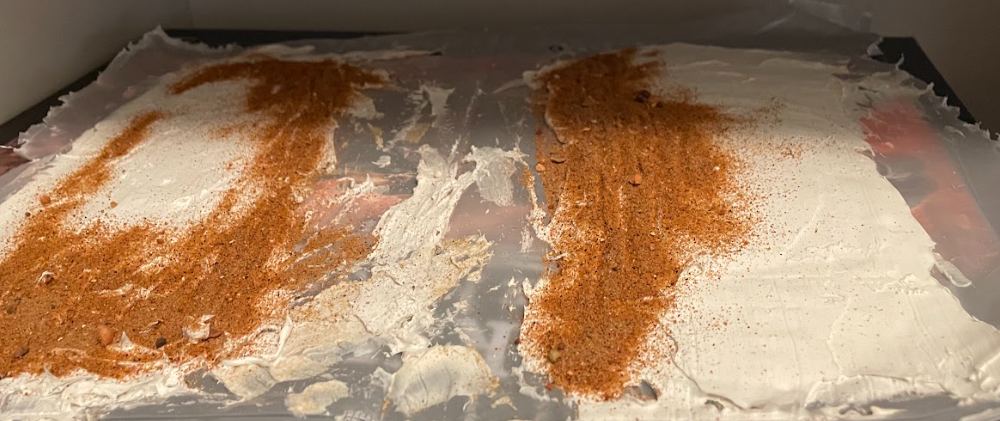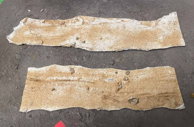 The basic process of making caulk roads is to smear a lot of it in the vague shape you want onto a surface it won’t stick to. My first tries were doing exactly that, squeezing some out onto an old plastic bag, smushing it around with a tiling tool and scattering some sand on top to create texture – either by sticking or by falling off and leaving voids – and then running some base edges through it to create wheel ruts. It’s a thick application of about 1cm deep, to make sure it’s sturdy enough to withstand being peeled off and to stand up to gameplay.