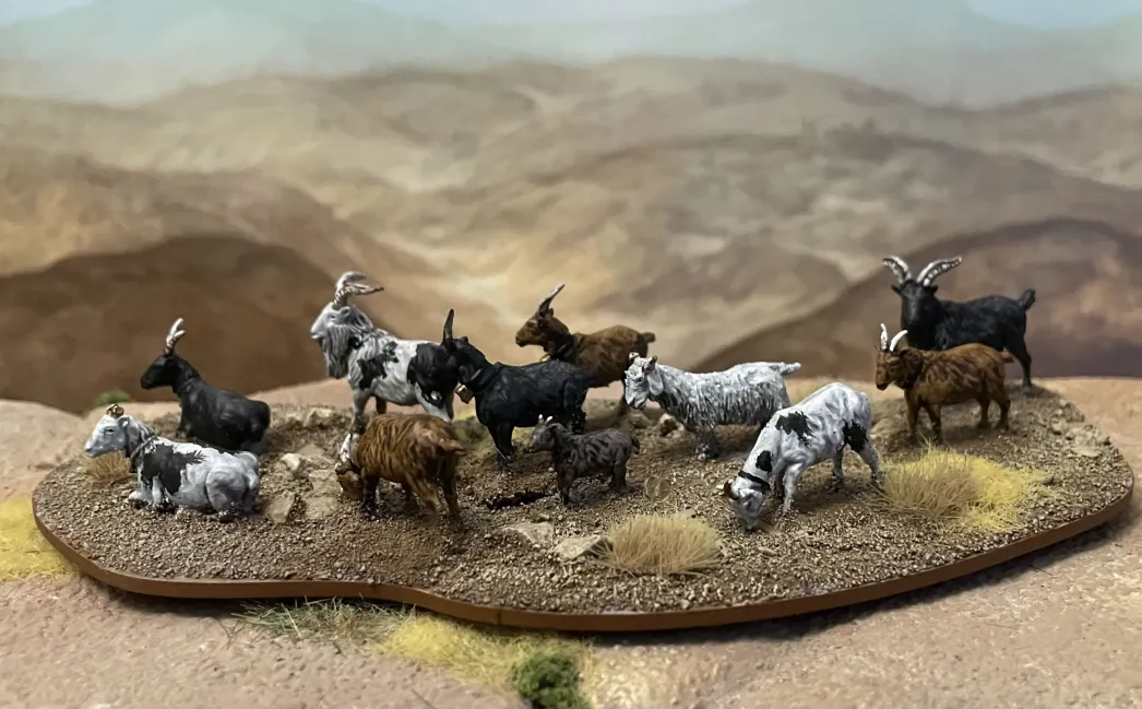 I’ve had a big push to finish off the scatter terrain I included some very shamefully unpainted examples of last time. Farming and Storage has dominated – trading and selling will come later – so it’s been very animal-based scatter so far.