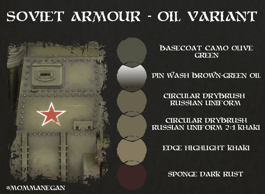 If you’ve seen my painting guide for grey German armour from a few months back, you will know I’ve started messing around with oil paints. In an effort to be conscious of people either not being able to get oil paints or being too young to work with frankly poisonous chemicals, I tried putting together a recipe that uses shades instead of oils. It is safe to say that using oils has severely improved my mood during painting. The capillary action allows for a very quick shading of all the rivets and recesses. Unlike shades it also leaves fewer tidemarks which means highlights transition much cleaner.