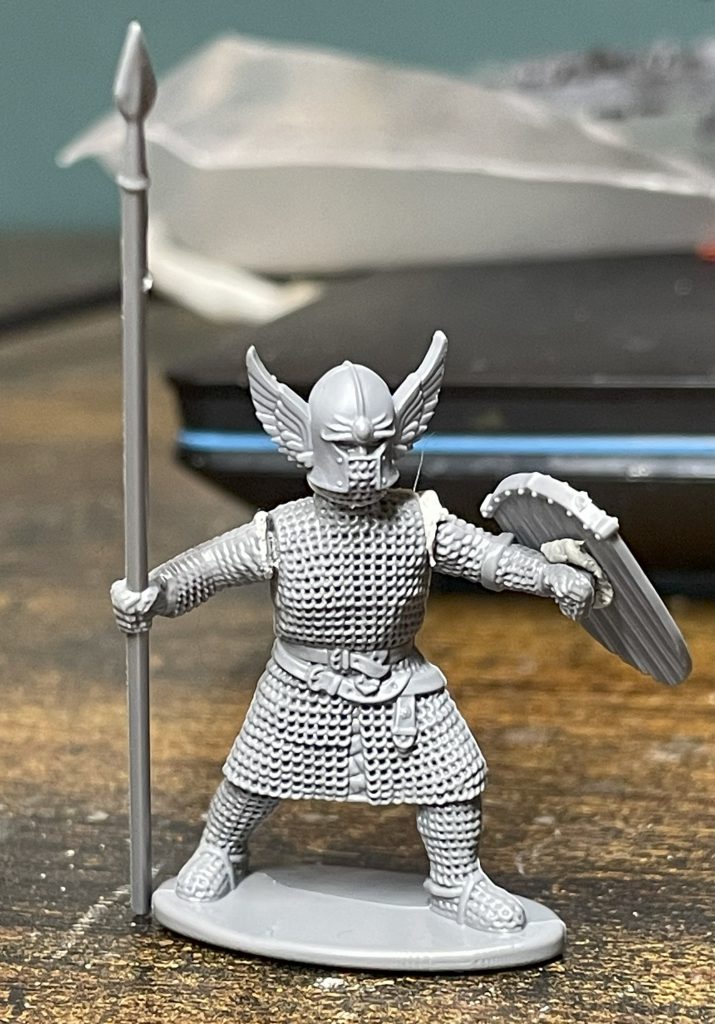 Detail on this kit is fantastic, from weapons to faces, cloth and leather. The great test of Medieval plastics though is mail, and this being a footslogging mail-clad set there’s absolutely nowhere to hide. Occasionally I can’t work out how Victrix manages this stuff. The 12mm range is ludicrous wizardry, but the mail here might top it. Often, mail smears or loses detail, especially around arms and legs, where undercuts pose serious difficulties and lead to flat lines of smushed up mail texture. I didn’t notice a single place this had happened on my first build and – knowing that someone would pull me up on this if I didn’t check again – looking through the sprues now I can find precisely 2 very small smears – one inside leg and one outside arm. That’s absolutely crazy! Another mail kit I have – much older (pre pandemic) has a smear on every arm.