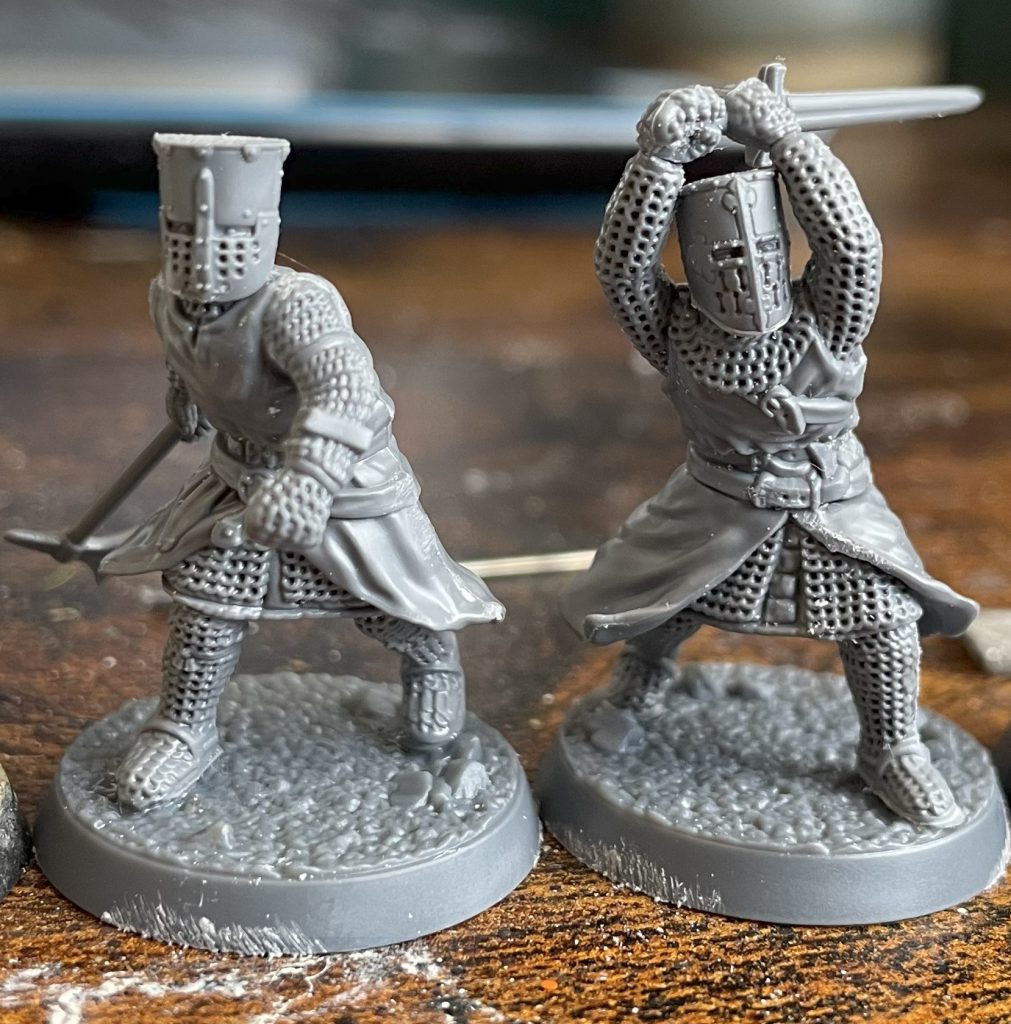 Building all these is straightforward – helped by Victrix’ new, much more detailed instructions – with simple head and arm joints that give you a lot of options without being everyone-looks-forward-and-has-arms-out poses. The joints are the same as the Mounted Knight set, making both sets compatible with any kitbashes you can imagine. They’re a delight to build, and cleanup is easy and straightforward, with the usual caveat that cleaning mail requires a light touch.