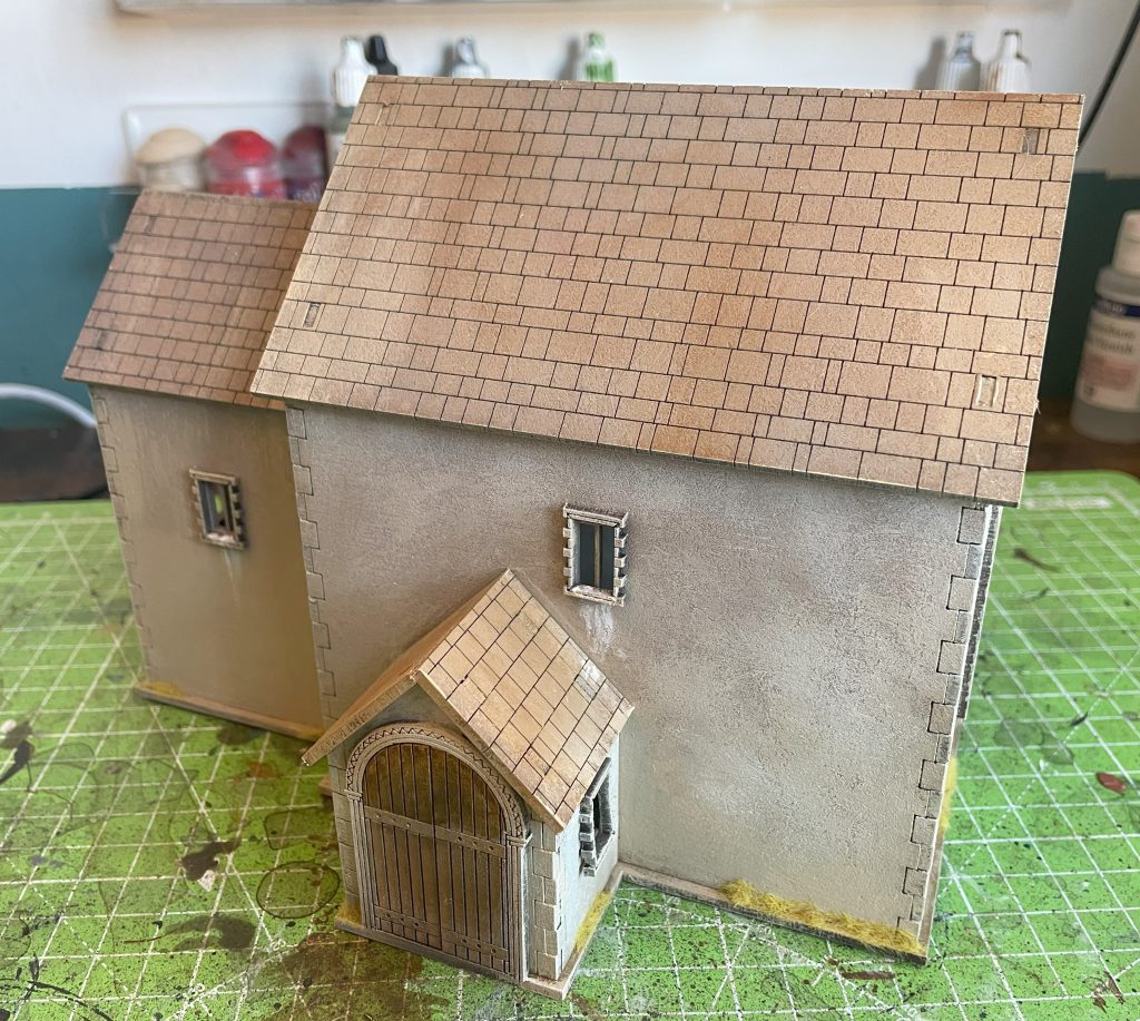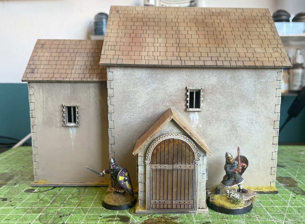 Painting the church appropriately will really let you take a (wonderfully) generic bit of scenery and theme it appropriately for your table. A very early Saxon church would look fantastic with roman-style white walls and the classic “we really want to project the image of Rome” red tile roof, while later Saxon and Norman construction might have darker clay tile, or even slate, roofs. Local building materials will change the colours as much as fashions, so have a think about the look you’re doing before diving in.