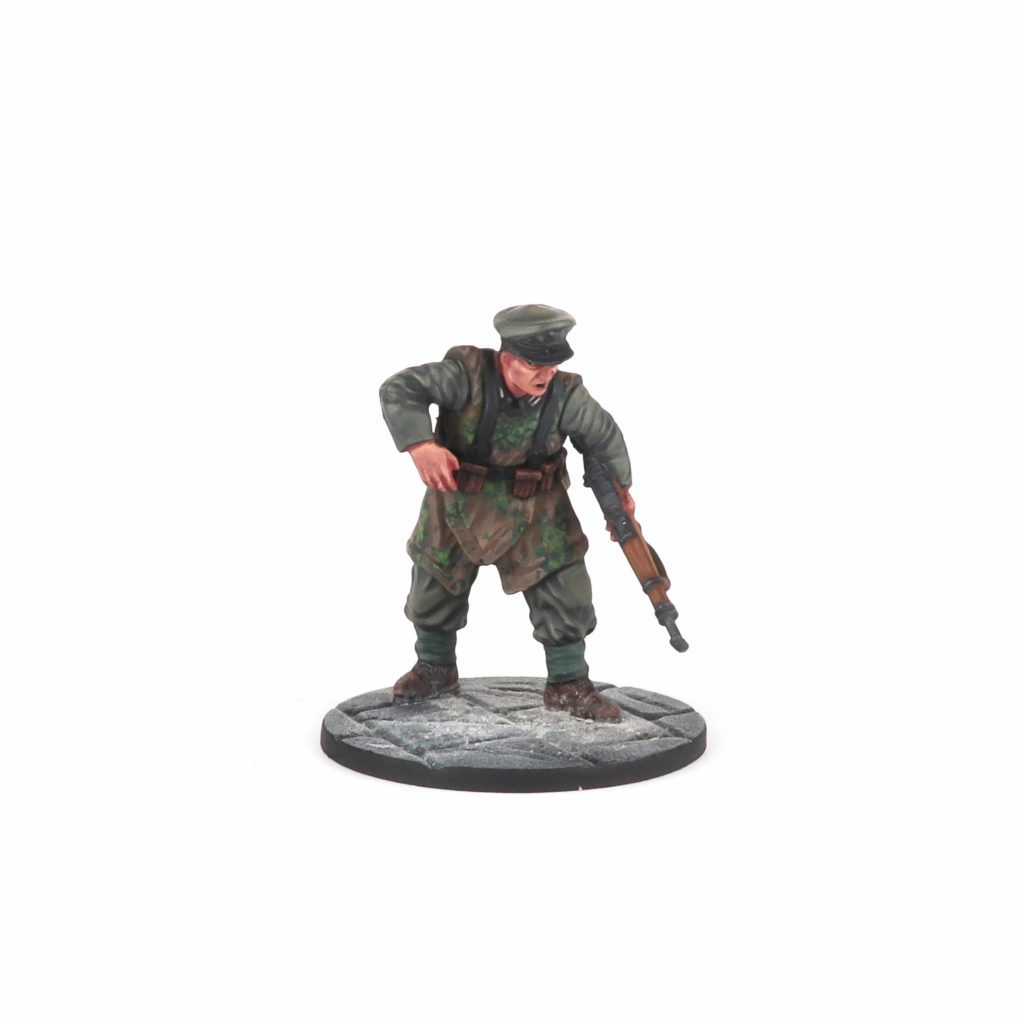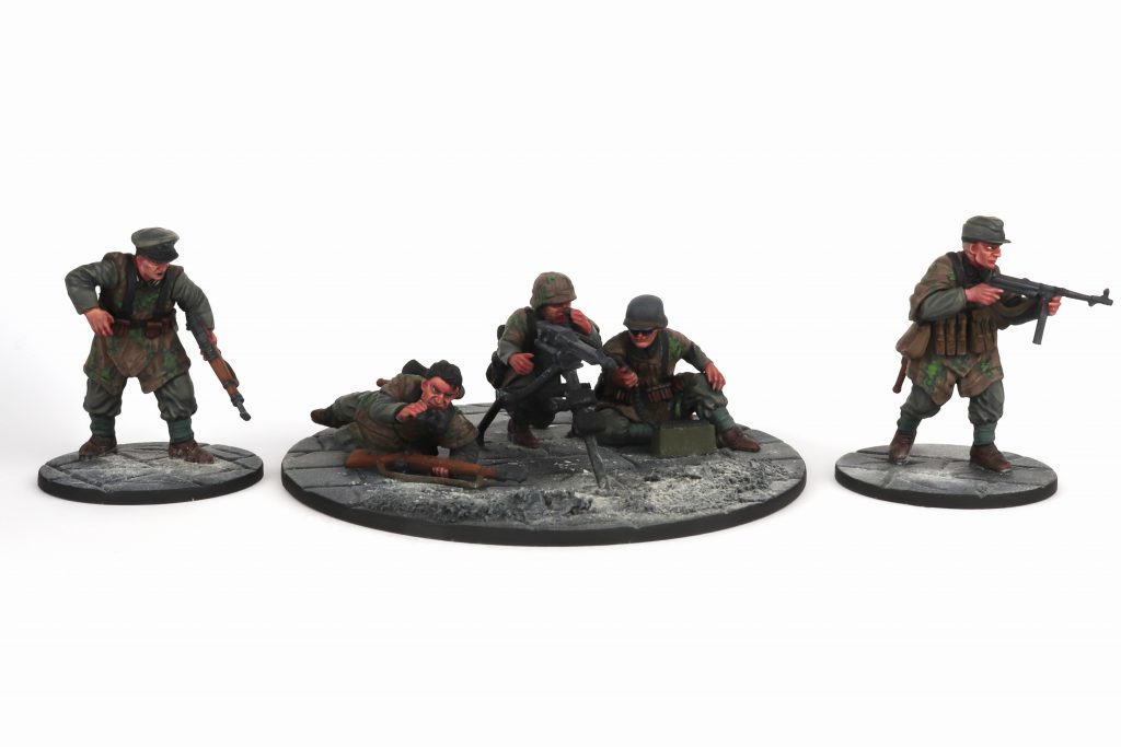 These guys have a good amount of details, but I do feel they have a bit too much in some places; the fabric especially feels overly textured, and there are a LOT of folds. Obviously clothes fold and crumple and are not smooth and flat, but some of these minis feel like overkill. I can see what the sculptor was going for and I am certain this would look great on a much larger scale model. However on such a small scale, all the bunched up texture comes off as more noisy since it is all so compressed. I have a similar critique aimed at the Zeltbahn ponchos, they too feel much more suited for a larger scale of model rather than what you get with 28mm. The last point goes somewhat in the opposite direction — most of the heads have an undercut at the back of their head; this is represented by a smooth raised surface which just looks… odd? It is obviously meant to represent short shorn hair, but at this scale that is a difficult detail to represent and so it is just flat.