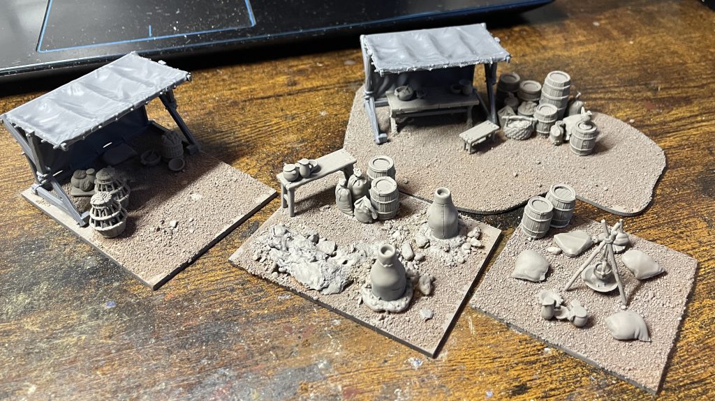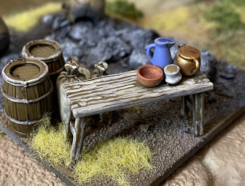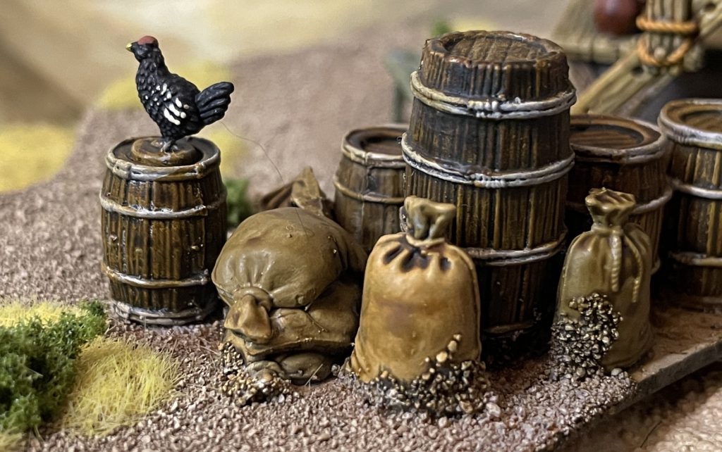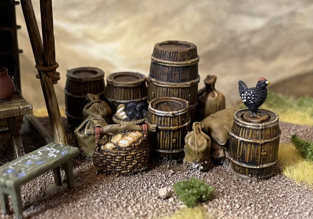 Looking around the industry though, it seems like the fairly agreed upon price point for a set like this. Two market stalls, bags, barrels and tables, seems to cost you about 30 whoever you go to and whatever material you’re working with, so this could well be just an industry standard!