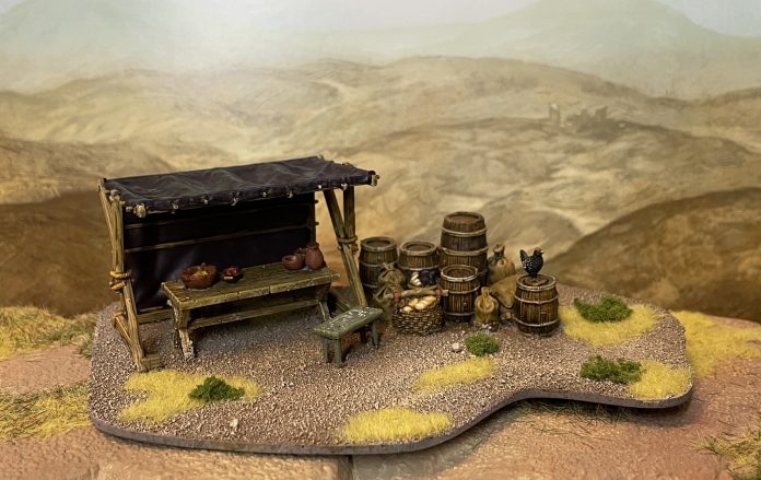 Market scatter scenics aren’t all that rare. There’s sprue-plastic options, cheap toy plastic, resin, metal, even – god forbid – siocast versions of the market and accoutrements out there for you should you wish for them. This is a crowded market, but it’s one with a few key issues. One other kit aside, your options for market scatter tend to be very chunky, quite expensive metal and resin kits that are usually just a little out of scale with your miniatures, card and MDF options that work well enough, or, for those of us with a lot of patience, scratch built homemade versions. They all look at least good, but nothing out there looks absolutely fantastic.