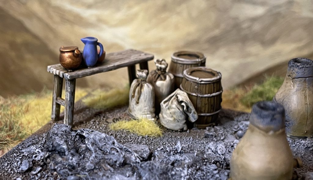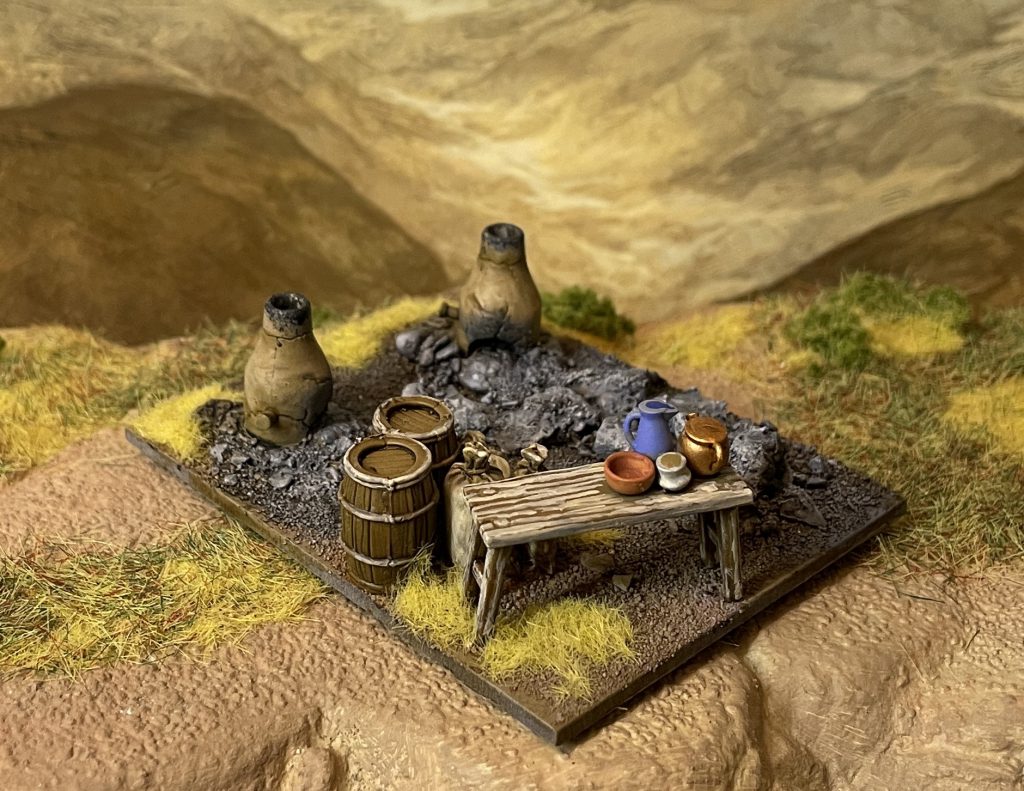 The other focal points are the furnace and cooking fire. Both are sculpted well, with the furnaces being delightfully chunky and archaeologically accurate. The cooking fire, with suspended pot, is a lovely piece that I am sure will make for the centre of many a diorama.