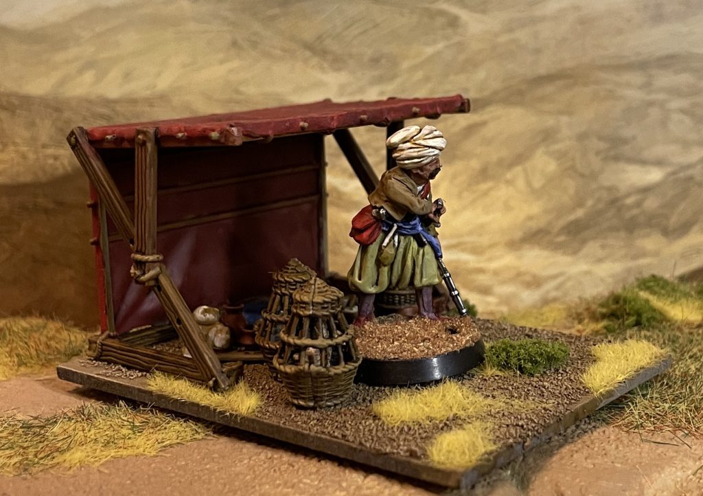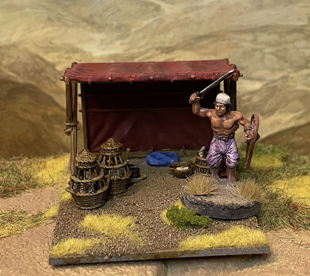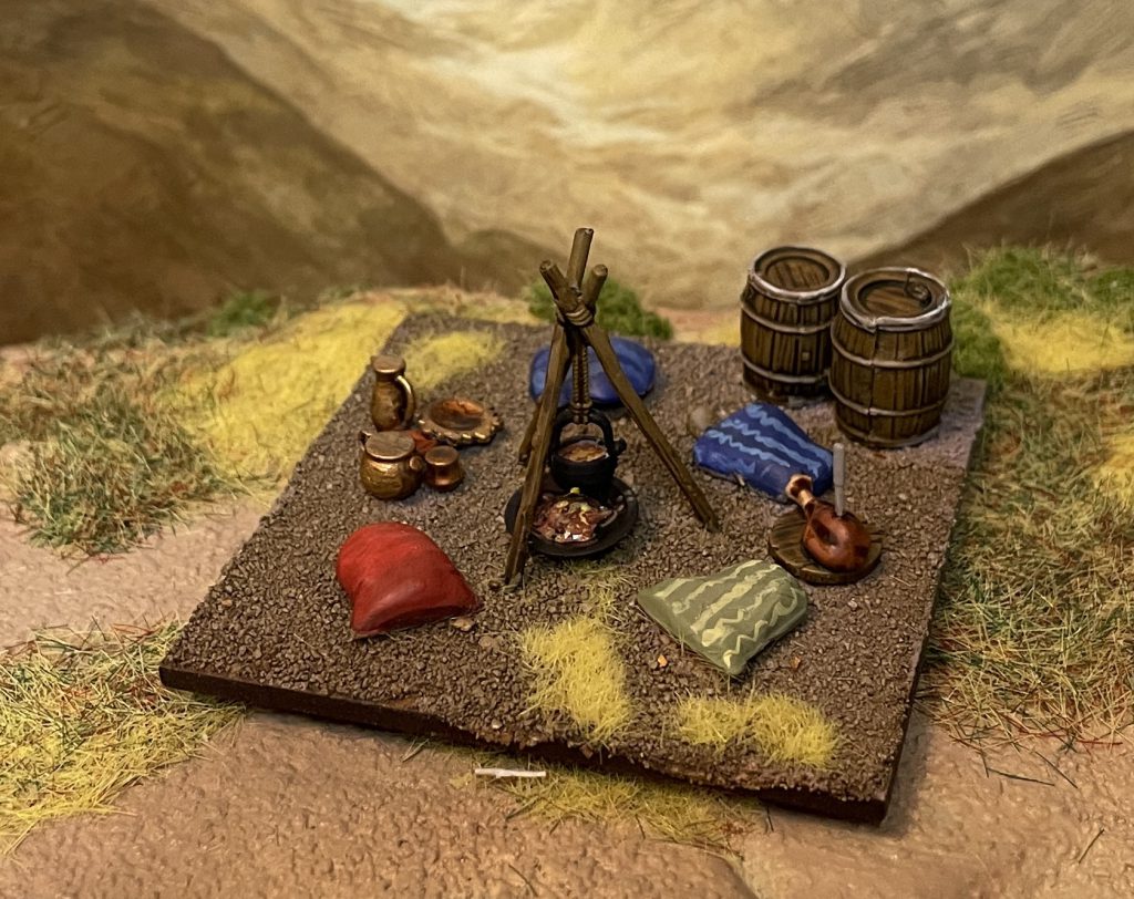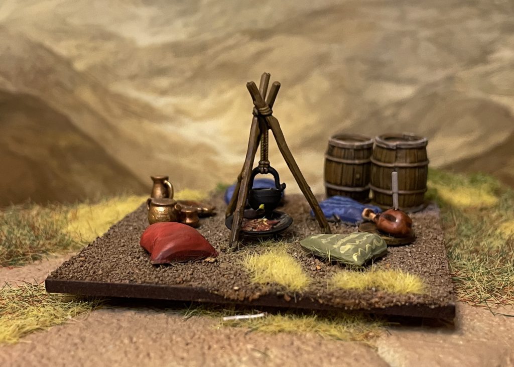 Though this bag is made with Pillage in mind, and the European Dark Ages/Medieval in aesthetic, it works for a vast geographical and chronological range. There’s nothing stopping you from using these all the way to the modern day – there’s a farmers market near me that uses metal versions of the same market tents – wherever you’d like to in the world. They scale extremely well, much better than most scenic ranges do, with 28mm infantry, so the sky is the limit here – Saga, Pillage, WW2, Burrows and Badgers, it’s all going to work really well. Everything I’ve put together is destined for my Egypt board, but while the set does look very Europe 500-1200, nothing absolutely nails it to the area or period and I expect these to crop up in a HUGE range of projects.