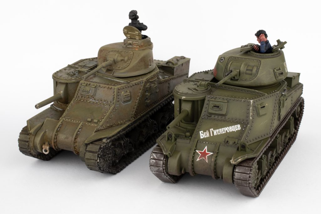 When I received these two tanks I knew I wanted to paint them up as Soviet Lend-Lease tanks for my wife’s Soviet army. While the Grant was historically only used by the British, I figured it would be fun to paint it up as the platoon commander with the bulkier turret containing the little radio equipment available.