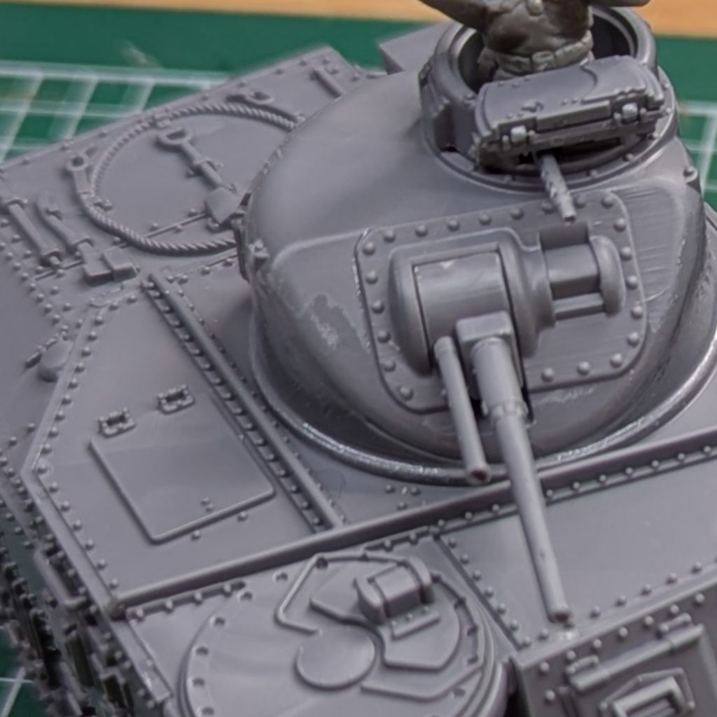 While I was worried about the gaps on the turrets showing very prominently when painted, I am relieved to see it is not as noticeable as I had feared. I still think should I ever paint a third Lee tank I will just go with epoxy putty right away to fill the gaps.