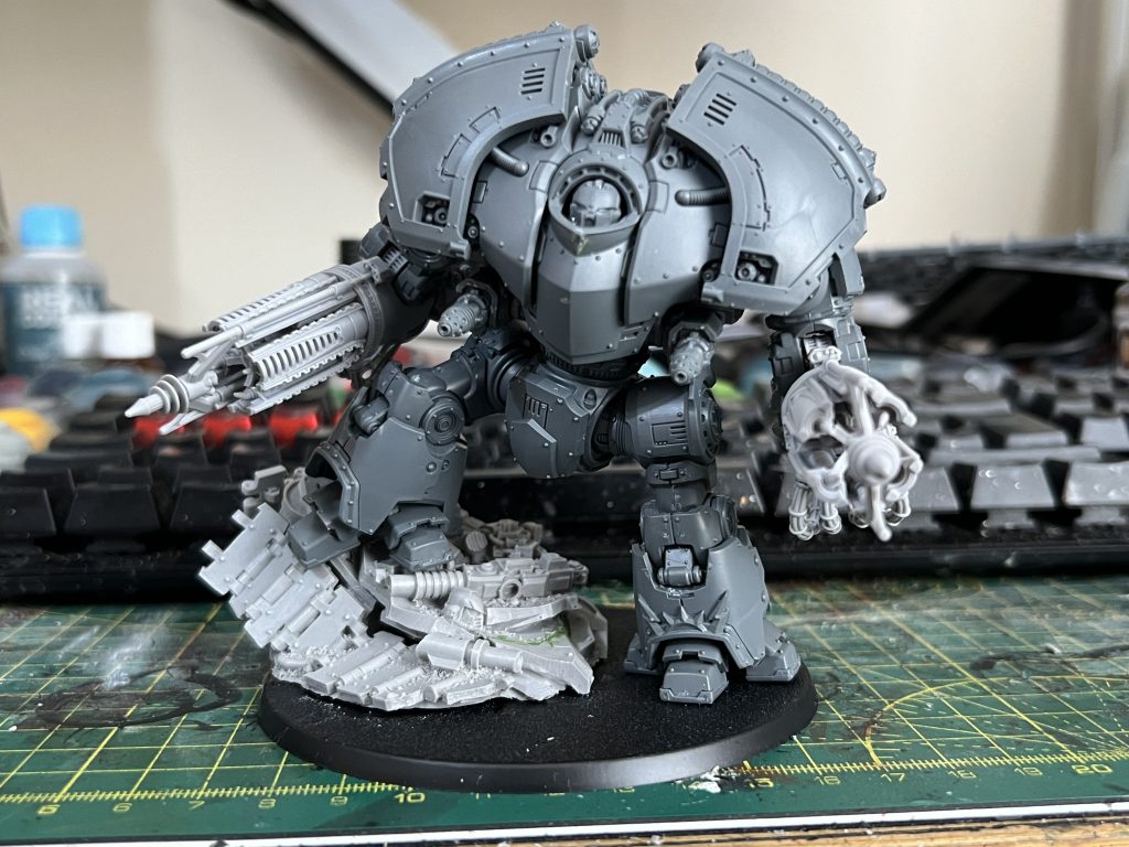 I’ve built the Dreadnought though, for my Raven Guard. I found some annoying damage on the sarcophagus I wanted to use, which I fixed by sticking a tiny Raven skull on.