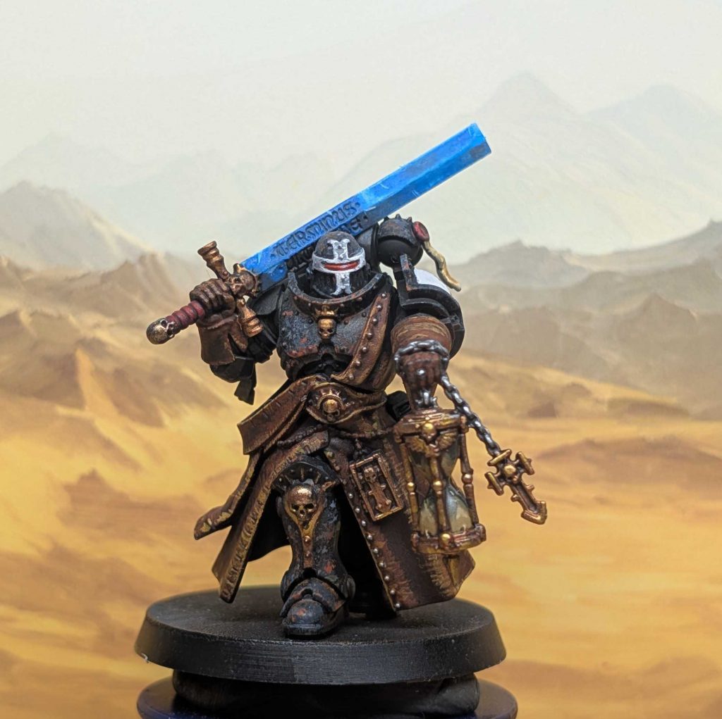 My Black Templar force is coming up close to 2000 (coherent) points, and I’ve finally gotten round to adding paint to my Judiciar who was sitting there primed since 2020. It was meant to be a quick paint-job to ready him up for a game the next afternoon and it ended up being one of my prized paintjobs so far, next to my Marshal.
