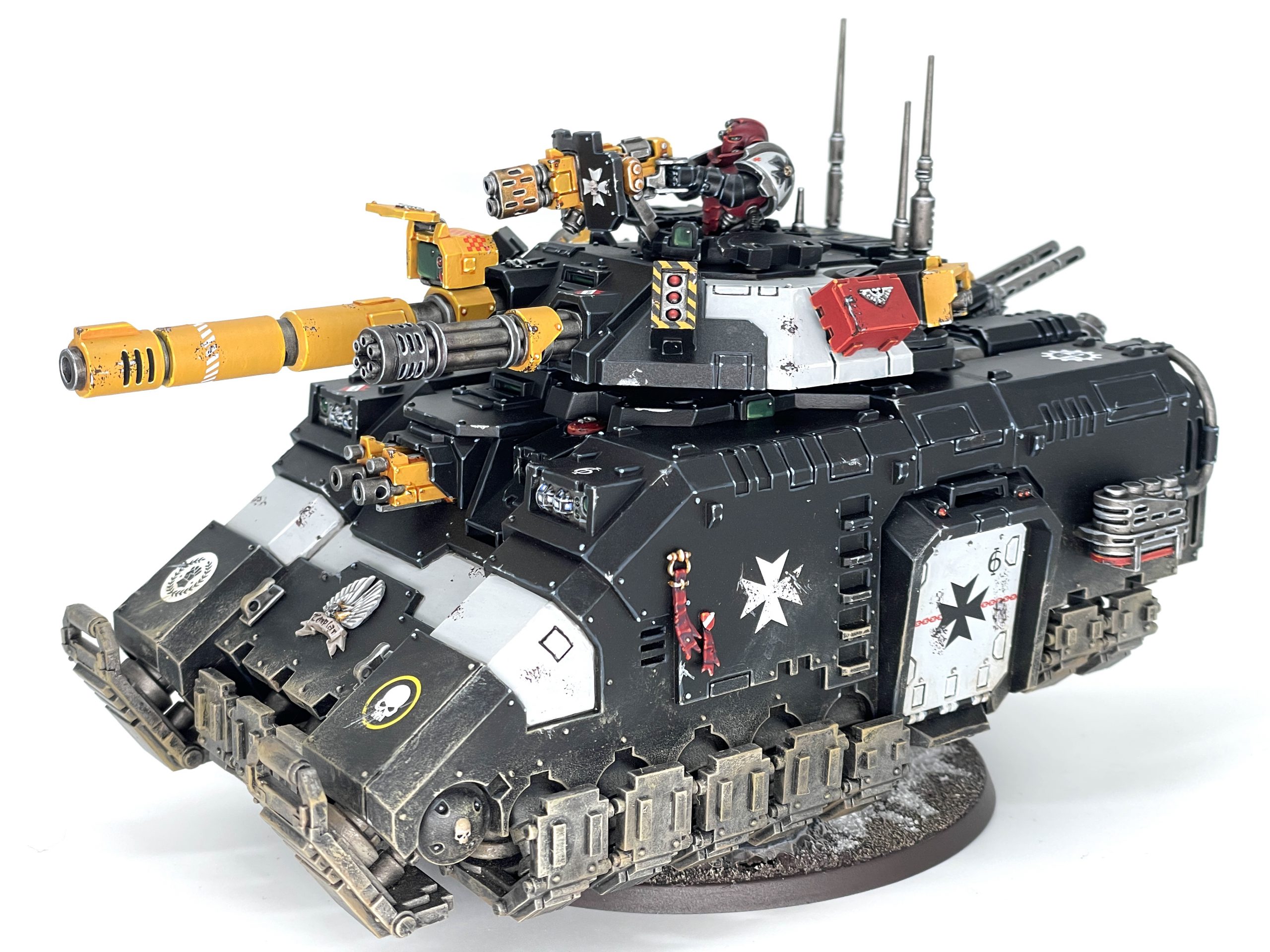Lastly, we return to 40k. I’d been invited to join Goonhammer at the Challenger’s Cup in Salt Lake City, and for my list I wanted a second Repulsor Executioner, as those are good as hell now. I’d be running Templars, naturally, and I ordered my RepEx at the start of the month, figuring I’d have a few weeks to paint it. Like a brain genius who understands release schedules and logistics, I’d pre-ordered Lysander in the same order, and after two weeks I realized this hadn’t shipped yet. I hit my FLGS up, grabbed the one RepEx off the shelf, and painted this in 8 days, varnishing about 24 hours before I flew out. I painted like it was my day job, because it practically was. That second (now third) RepEx has since shown up, but it was this one here who carried me through quite a few games in Utah this past weekend. Fun Fact: I absolutely hated how this model looked until I put all the subassemblies together and varnished it, and now it’s probably my favorite vehicle in the army.