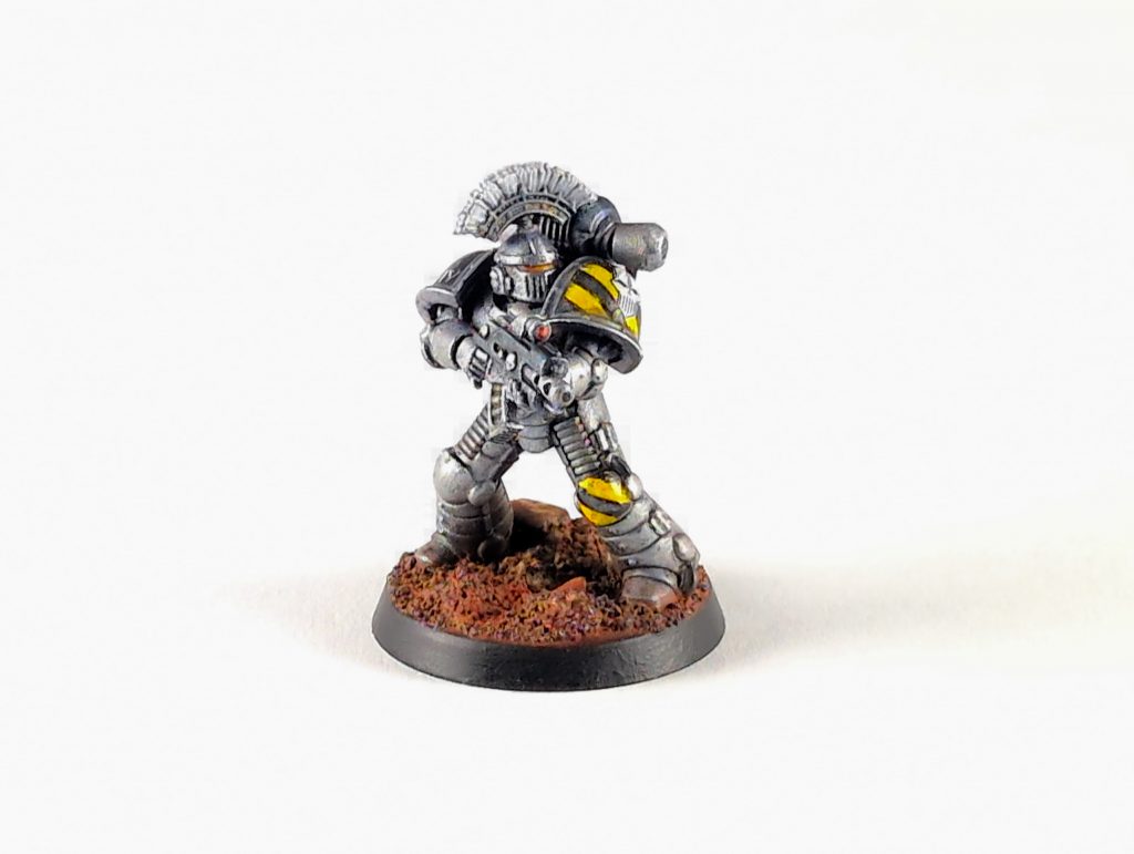 It’s been a very, very long time since I contributed to this lovely round-up. It’s also been an equally long time since I painted an actual model. I’ve done some work with terrain for GHO, but I genuinely can’t remember the last time I put a new model on the table. The reasons for this are not particularly fun, but what matters is that’s now changing. My friends encouraged me to get into Horus Heresy (to which more than a few people question if they’re really my friends), and I decided to embrace the Iron Within and get down on some hazard stripes.