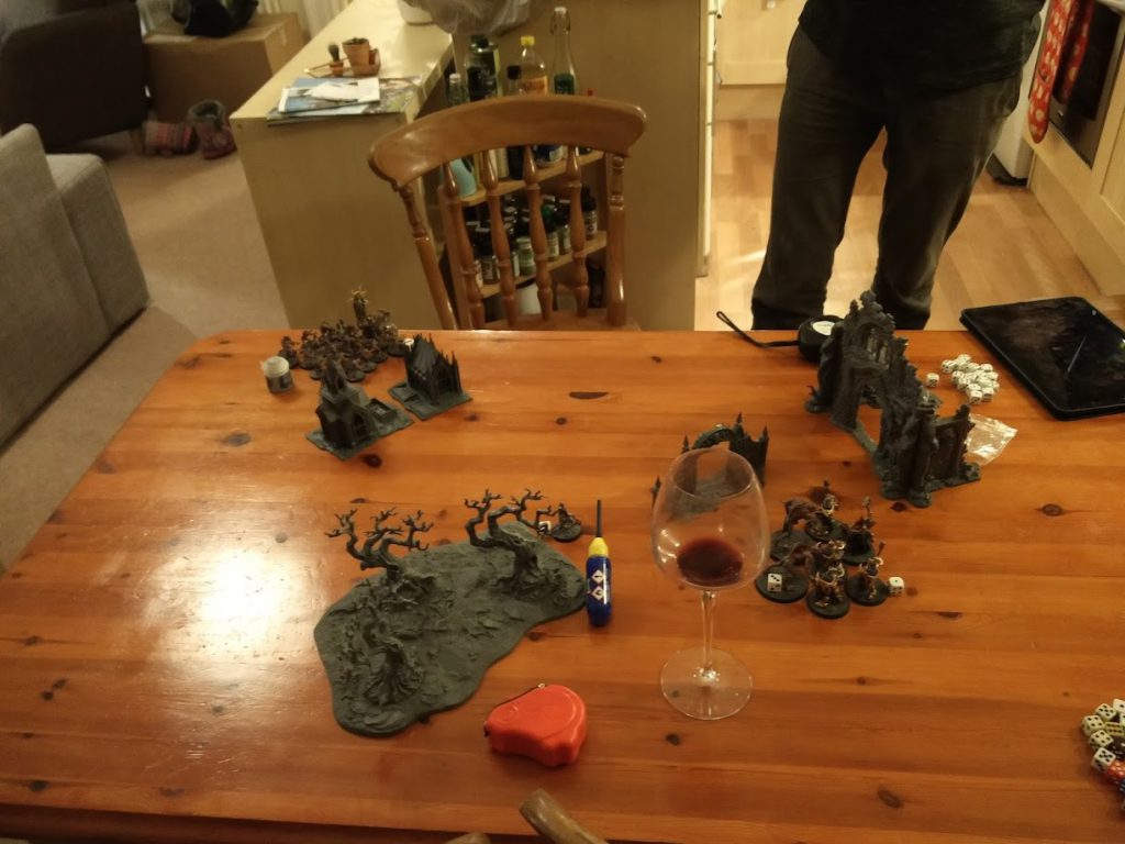 First – AoS1. I’m in my mid-20s, I’m cycling over to my mate Tom’s house with a huge backpack stuffed with foam cases. We put the models we’d painted that week on his too-small dining table, crack open so much wine that I cannot now comprehend it, and then I would inevitably demolish him at Warhammer. Drunk as shit, I cycle home via the local burger place and collapse into bed. Eventually we even bought a battle mat, and something to sit on the table to make it bigger, and actually painted our terrain. Chat, I don’t think it gets any better than this.