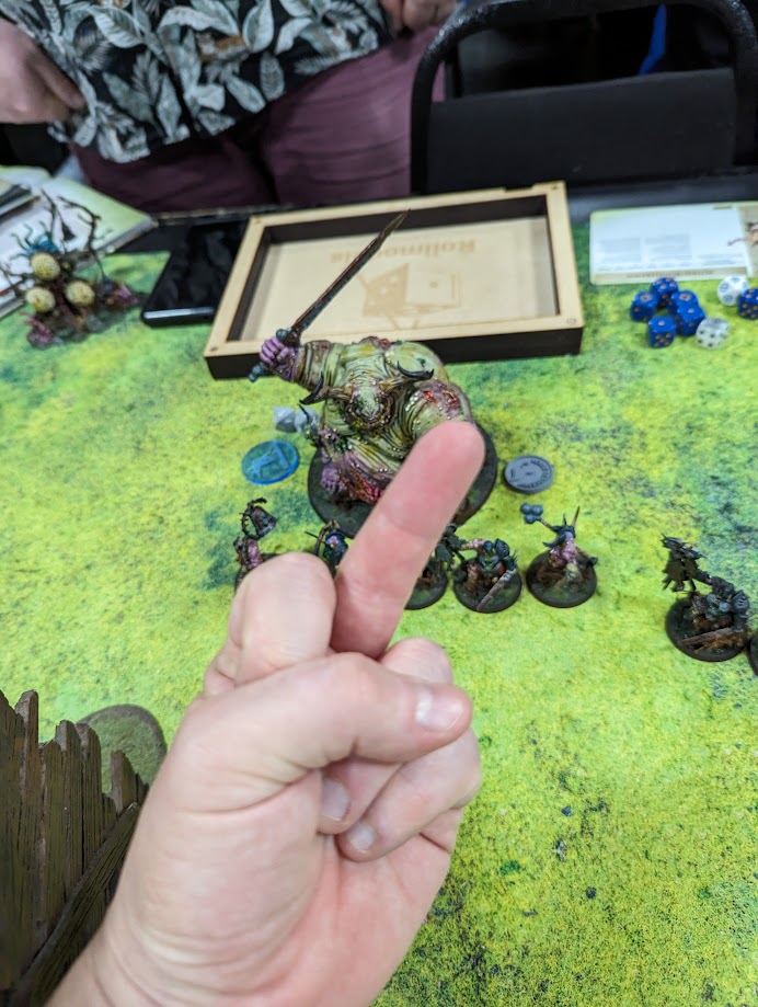 Finally, the actual best game of Warhammer I’ve played: Round 1 of Blackout VII against Rich Nutter (Cronch: that’s me!). This was a tight, competitive game of AoS between two pretty comparable armies played by two good friends. In the end, it came down to me having more of a game plan that I was playing to, dictating the pace of the game. Since then, Rich has really put the effort in and gotten massively better as a player, much better than me, and it’s been awesome to see his hard work really pay off in the last year. Age of Sigmar is a game about friendship.