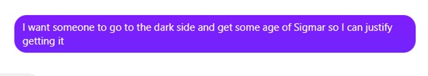 Then 3rd edition hits and command points suddenly matter, but OBR were still written to not be able to use them. The generic abilities like All Out Attack/Defense and Forward to Victory were really good and essential to play the game and OBR were simply locked out of them for some arbitrary reason. Their Battletome also took a really long time to come out so OBR players were stuck playing a different game from their opponents. When the tome did hit, it’s like GW went “uh i don’t know, they’re command points now?” so you got to sit on your dragon’s hoard of like 10 command points every turn. It fucking rocked.