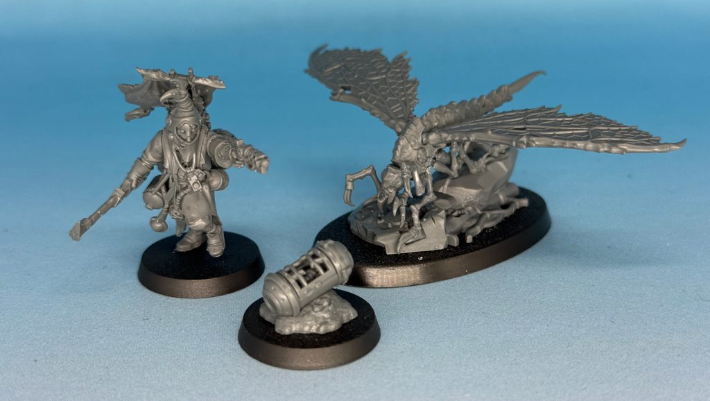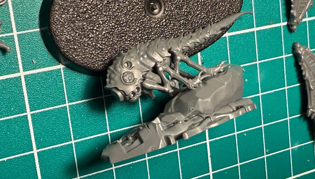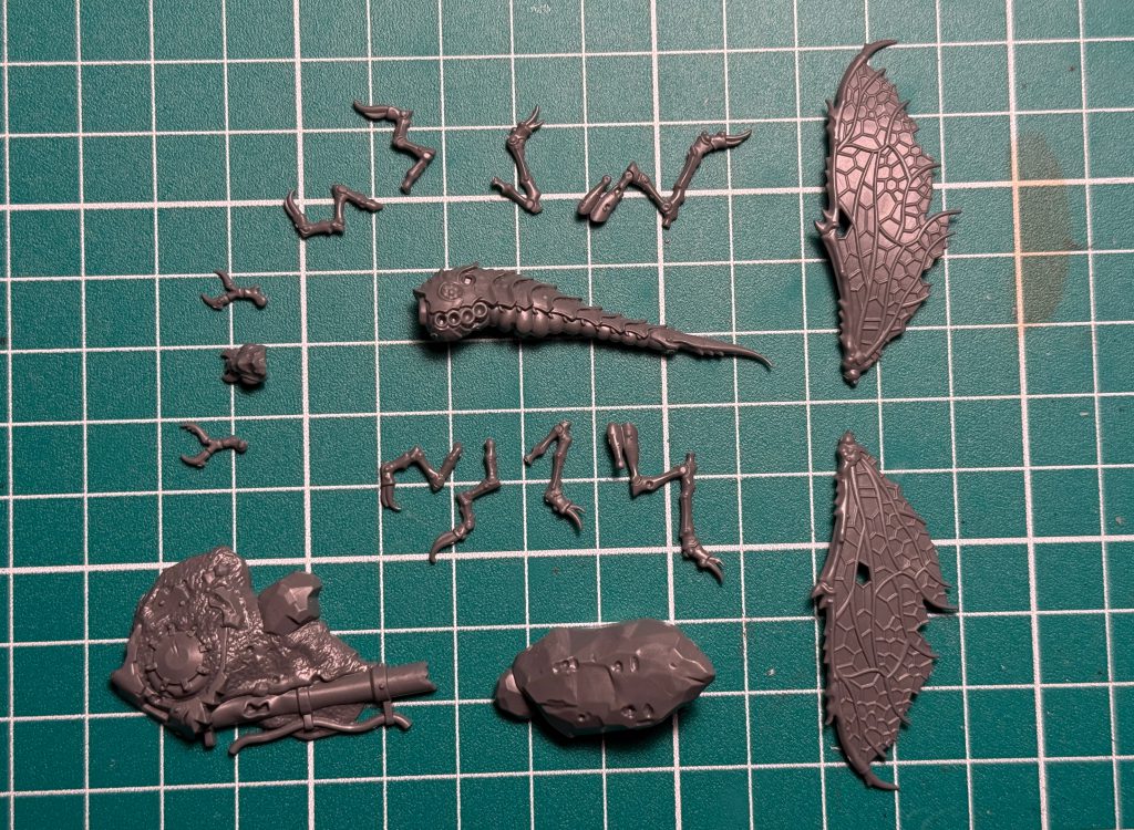 I only assembled one Ashwing due to time constraints. What did I learn? It’s 16 parts for the one bug. Build the base first. Dry fit everything. And as you glue the legs on, especially for the one standing on the rock, take care with the leg placement. Turns out it matters and you’ll need to glue the legs to the body and base at the same time. I didn’t realize this, but I guess I’ve built enough kits to check and I’m glad I did.
