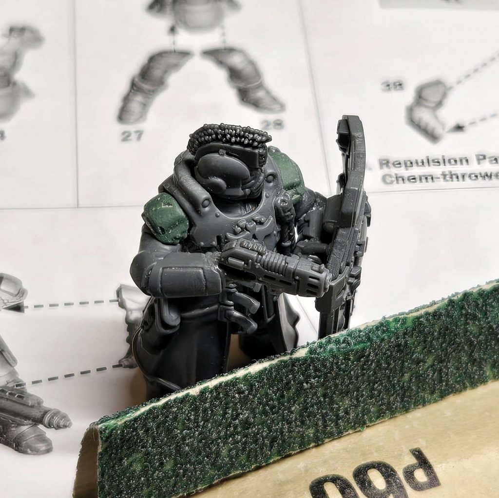The Subjugator Sergeant build has two options – one with the new chem-thrower and one with a heavy stubber. I tried a few old Subjugator arms on the Sarge torso and it seemed like the opening was smaller. In this case, I wanted to use the new arms for both builds – but if you want a sarge with a shield, you may have some conversion work ahead of you. You would likely just need to shave off some excess to get them into the shoulder holes.