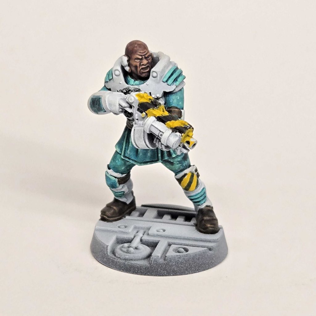 The Enforcer Haunt build was mostly fine, but did have some nightmarish bits. The hoses are extremely small and brittle. One was already broken, and broke in other places when I tried to salvage it. I left one tube off, and in hindsight would have just clipped the tubes off of… whatever things on the legs they are connected to. I stuck it out as I really want to run a haunt in my next Enforcer gang.