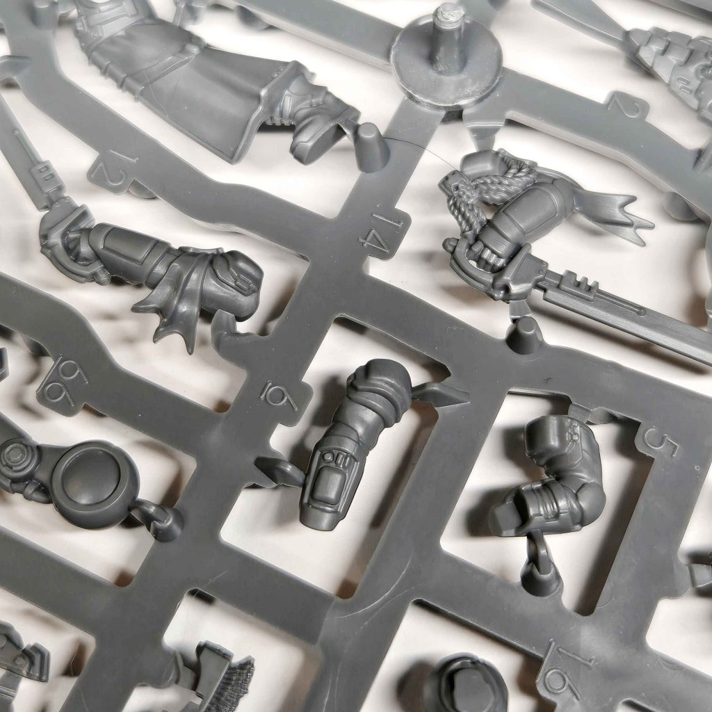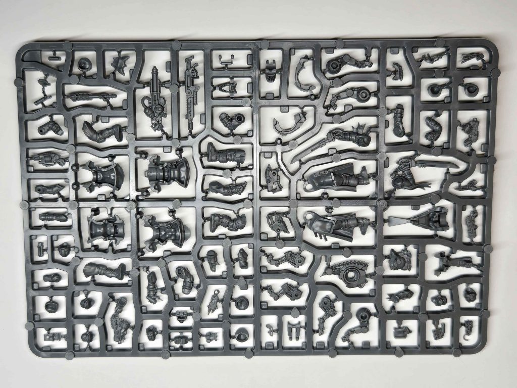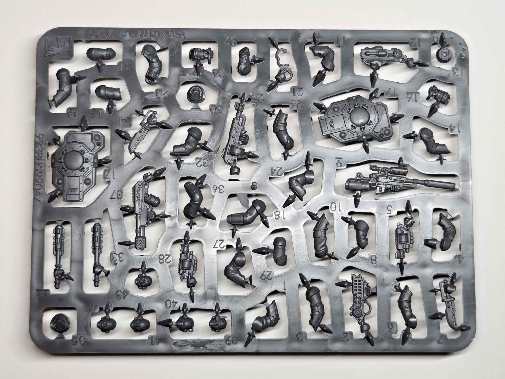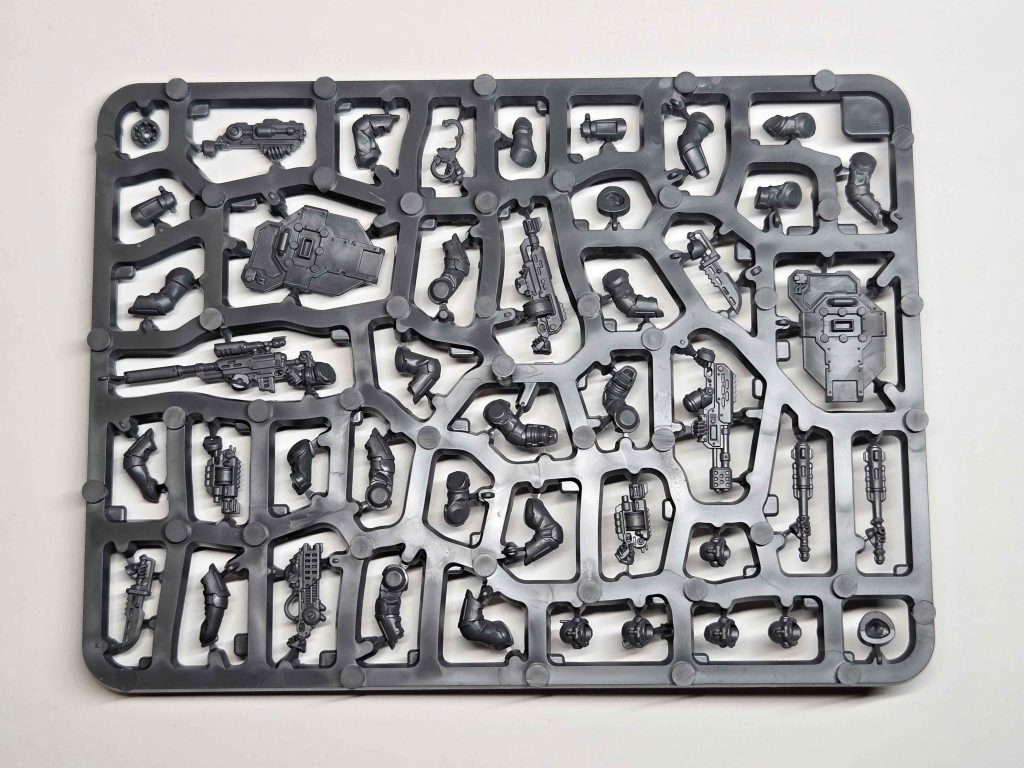 The upgrade sprue is great. With non-Subjugator enforcers getting access to riot shields, it’s great to see the bit show up in here. Each sprue has a right and left-handed option, with two sprues in the box. Other notable inclusions are an at-ease long rifle, a two-handed concussion carbine, a web gun, and a flamer. Close-quarters enthusiasts can enjoy a pile of autoguns, power knives, and shock batons. The five new heads are a welcome addition as well.