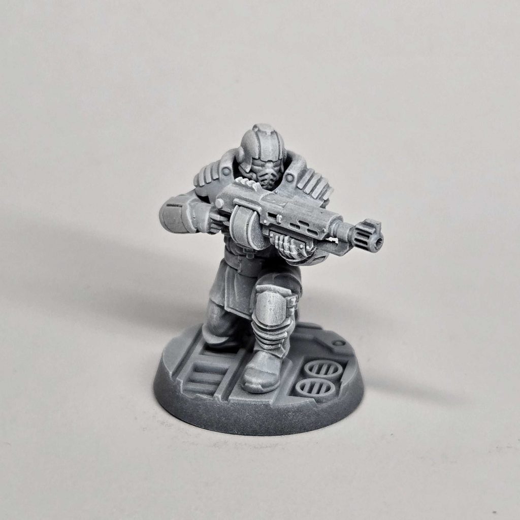 The Palanite Sergeants also have surprisingly smaller arm holes. The options in the box are for a bolter or an autopistol and a baton. My ideal would have been a sniper rifle from the new upgrade kit, but having already spent a bunch of time on the captain conversion, I knocked out the bolter build. Everything went together smoothly, and I like the result here – I just wish that it had the same shoulders as the standard Enforcers