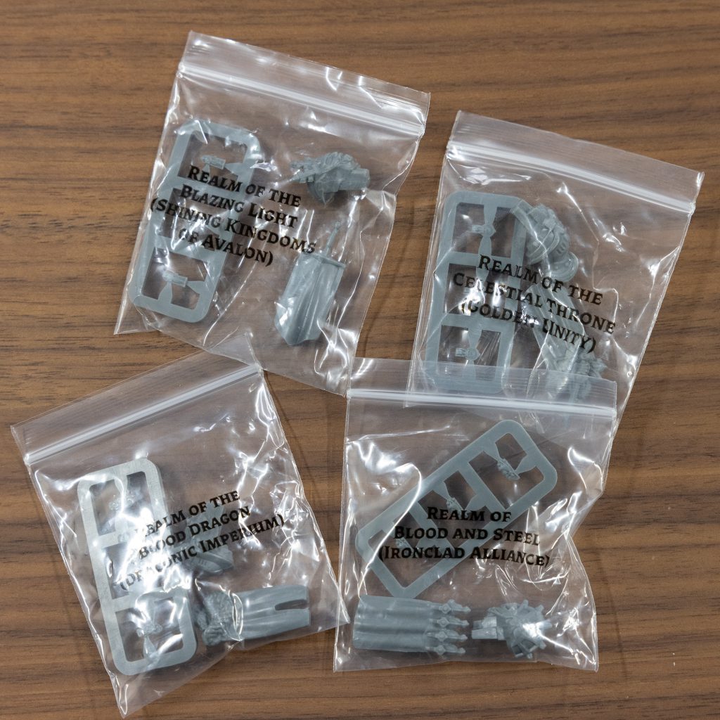 Finally, and probably the main draw of this box, are the eight plastic ‘mechs. Included in the box are an Atlas (including parts to build it with different decoration for each of the five major realms), a King Crab, a Marauder, a Rifleman, a Scorpion, a Phoenix Hawk, a Firestarter, and finally an Urbanmech. These are a touch bigger than regular versions of these minis, though not enough that they feel out of place used next to other ‘mechs. Going up in size makes these the cleanest minis Catalyst has made yet, with sharper detail and fewer mold lines. The larger ones do overhang their bases a touch, but those same ‘mechs overhang their bases at a smaller size as well.