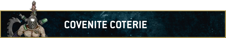 Covenite Coterie is the Haemonculus Covens Detachment option, giving all of your Covens units -1 to be wounded by attacks with a Strength greater than their Toughness characteristic. It also gives you a way to resurrect Haemonculus models when they’re destroyed and bring back dead bodyguard models.