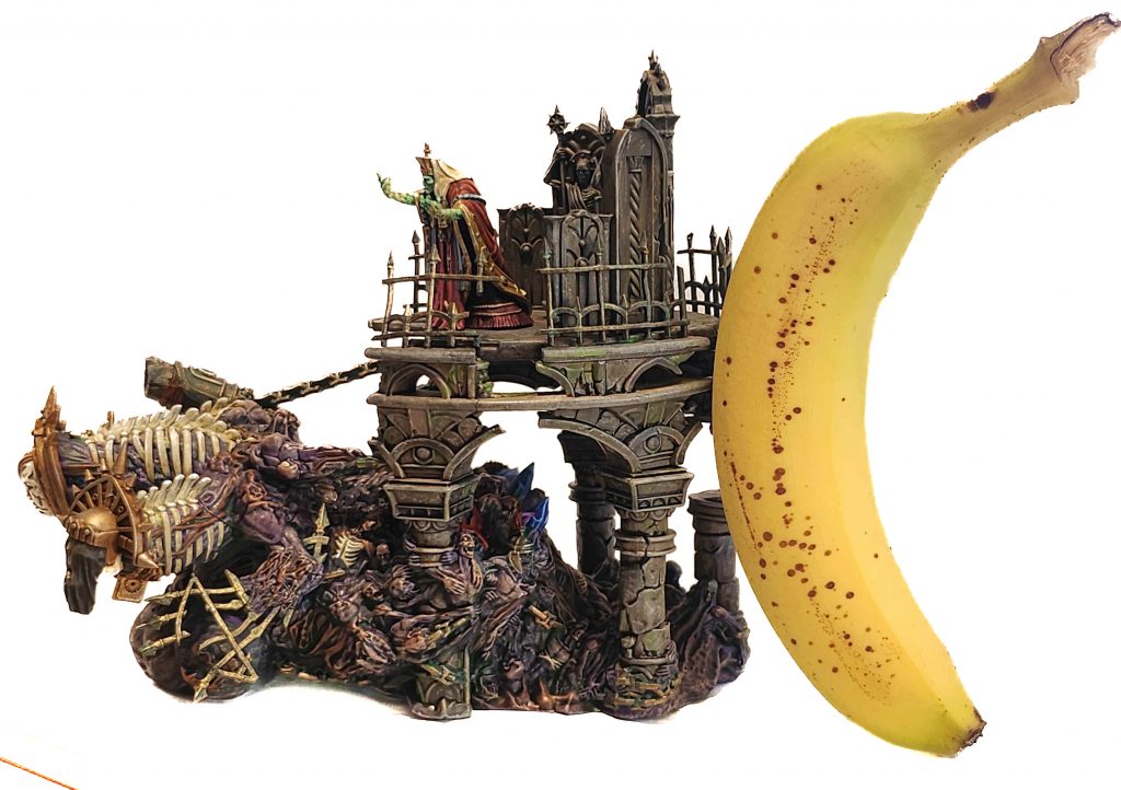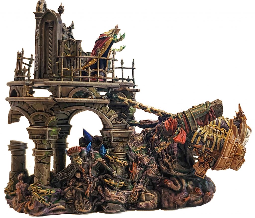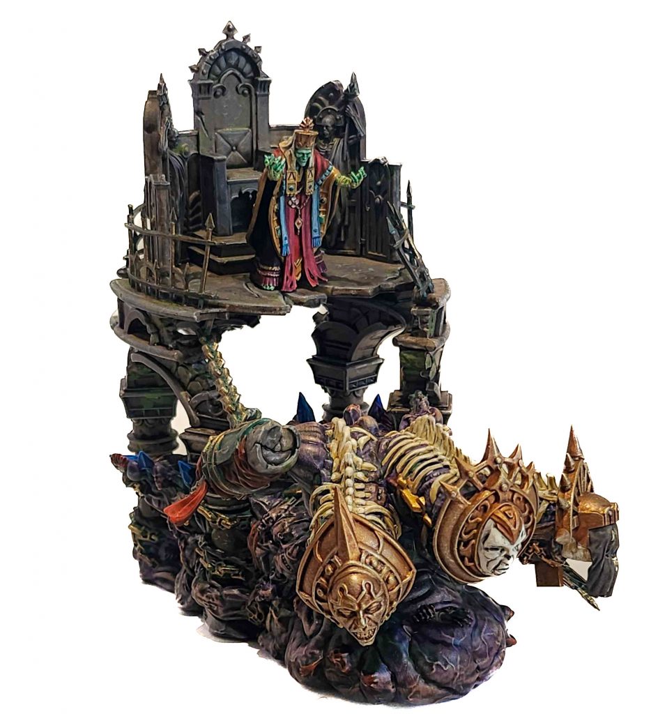 All in all I found this model a real easy build; there are some parts, notably iron railings, that are slightly prone to a snap but this just adds to the whole “ancient ruin” vibe with the rest of the model being solidly stable and capable of some reasonable battering. It took around two hours start-to-finish to build it up with only minor distractions of “how to paint ancient stone” slowing me down. As mentioned, the painting was fun, if a little repetitive with the sheer amount of stone and generic “flesh” but the odd little gory detail and incredibly fun tri-face frontage more than made up for it. I’m really happy with how this model acts as both a leader of the army, and as a hobby piece. I’m excited for the future to see what forsaken conversion opportunities are born from this beautiful monstrosity.