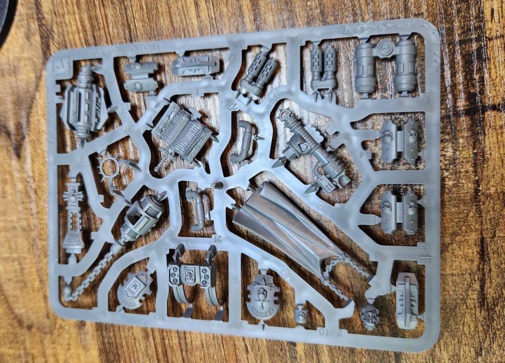 The Grand Master in Nemesis Dreadknight kit includes the regular Dreadknight sprues, plus one half-sized upgrade sprue. This upgrade sprue has some aesthetic pieces, as well as some new wargear.