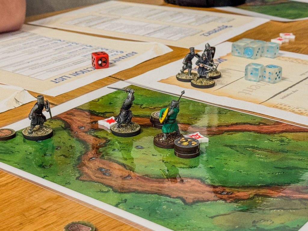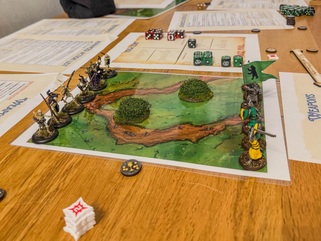 The rules centre around you using “knights” on foot, not mounted, with advanced rules for a variety of weapons even including ranged weapons. There’s no list building you need to worry about, all of the balance comes with the advantages and drawbacks of each weapon, so all you need to worry about is what’s on the physical model you are using and making some form of distinction of what’s what. The developer has even said that you can “reskin” the game as you like, too, and with rules for various hefts of armour you can very easily use any fantasy or historical models that you have to hand! No need for them to be of the medieval era and no need to have them fighting against enemies that “make sense” either. Want to see who would win between a handful of Crusader knights and Lizardmen? Why not! Get it on the board, it’s all just for fun!