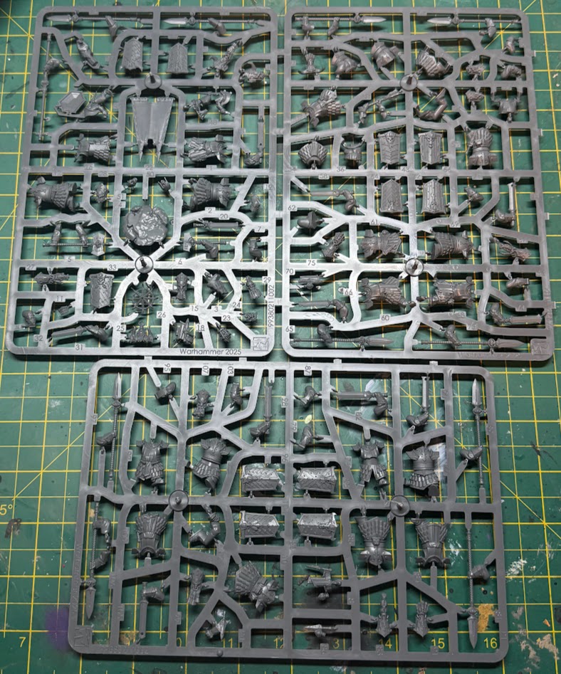 Rich: By comparison to the War Despot, the Infernal Cohort are the heftiest kit in the box, covering three A5 sprues.The kit goes together easily, with a variety of sturdy poses that, while not exactly dynamic, go together well to form a sturdy shield wall. The shields are interchangeable, and I opted to leave them sub-assembled for ease of access. My favourite part of the kit by far is the musician, who simply wields a large mallet with which to bong the gong carried by a hard done by Hobgrot.