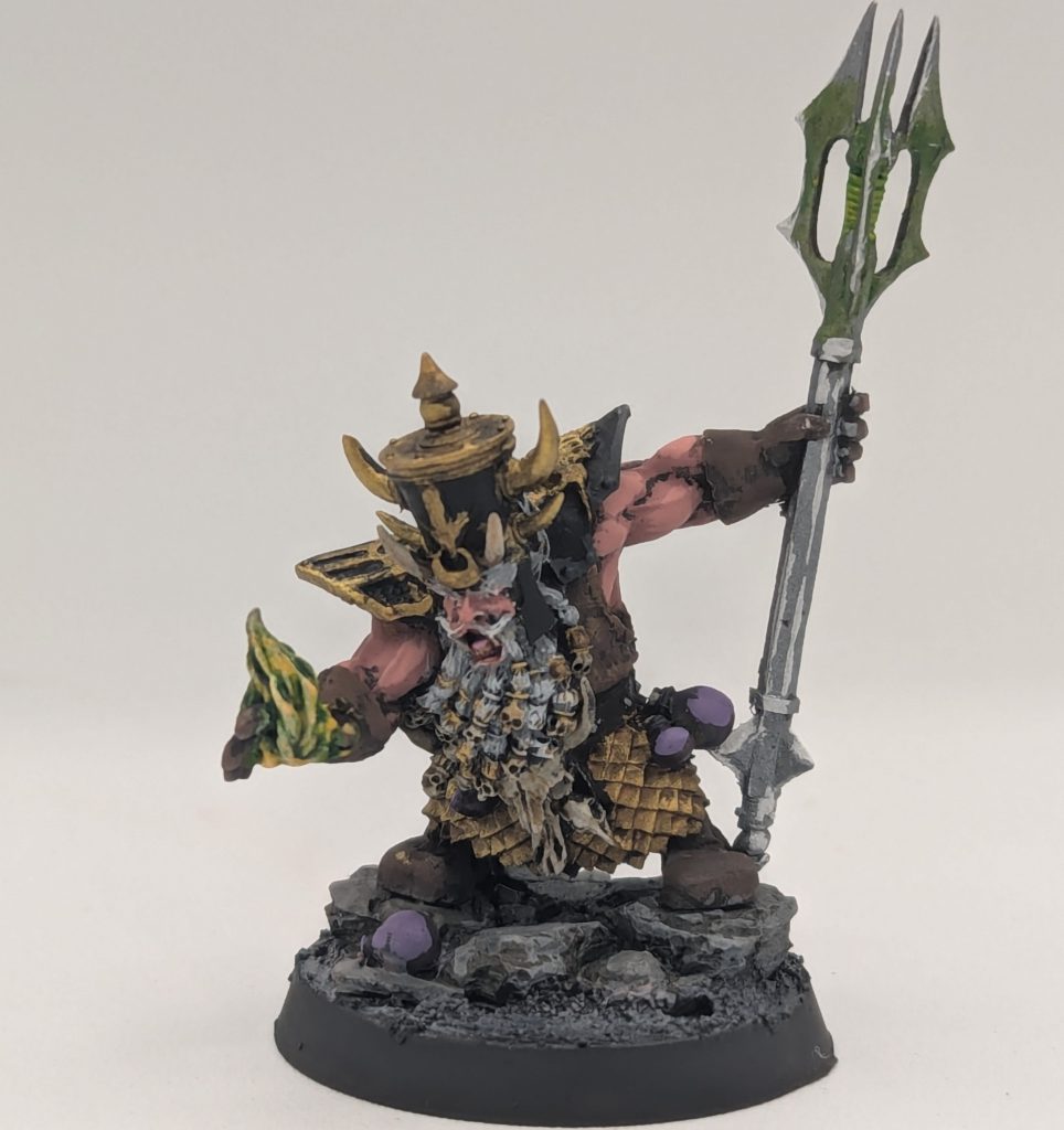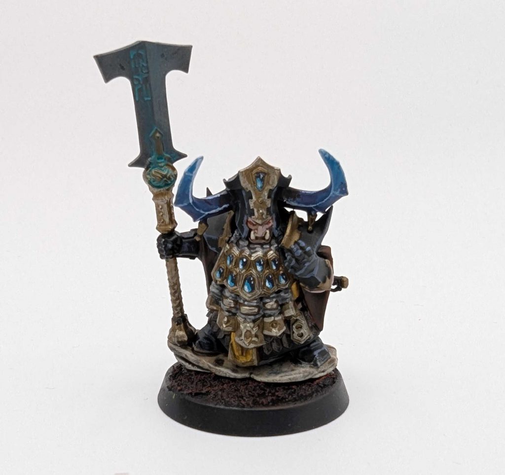 For the more religiously minded, the Ashen Elder is a Priest(1). He has the same statblock as the Daemonsmith but with no ranged profile. Ability wise, he gains a free Ritual Point if he’s near a piece of terrain or an objective with a Desolation Token on it at the end of your turn and has a 6” aura that expands by 6” for every token he has that allows Helsmith units to ignore the first point of damage each phase. He’s your most expensive foot hero at 120 points, but is very worthwhile.