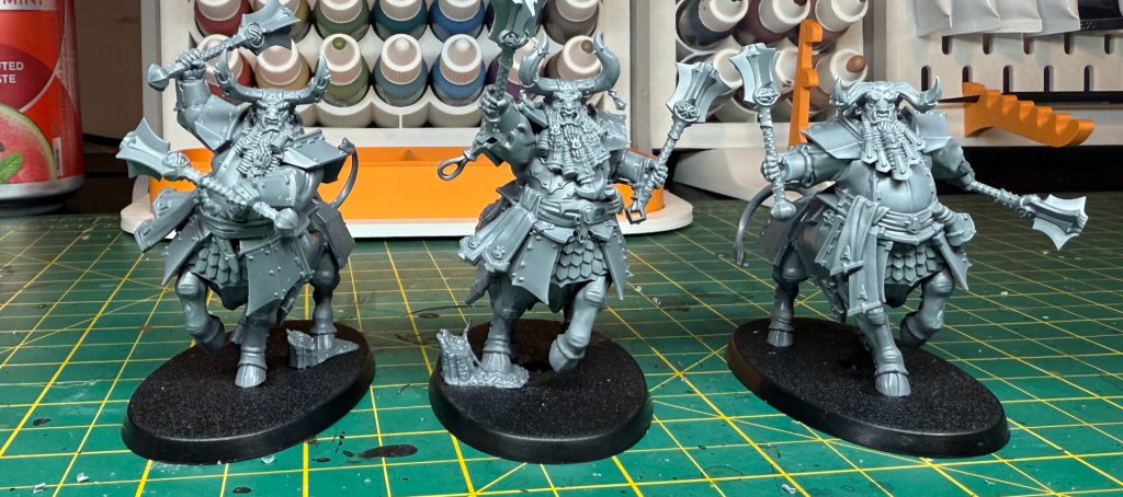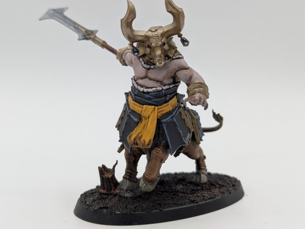 Although the Sentinels get hidden behind those imposing bull heads, the Bull Centaurs have the rare painting treat of a humanoid (duardinoid?) face that is slightly enlarged due to their monstrous nature. That makes it a lot of fun to work around the skin with highlights and shading to craft some severe expressions.