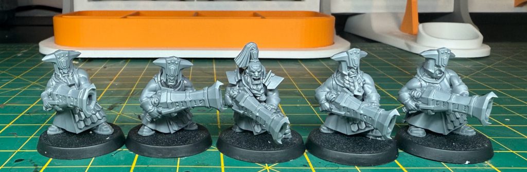These are possibly the simplest models in the range to paint. They forgo decent chunk of the trim present on the Cohort, and the guns are a lot simpler than the spear/sword and shield combo. Broadly I found that it was fine to get to anything visible with a paintbrush when the models were fully assembled, but you could leave the arms off if that is a concern.