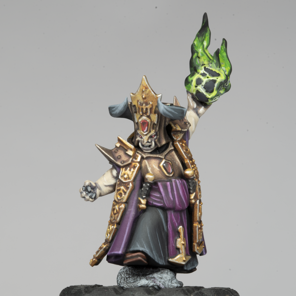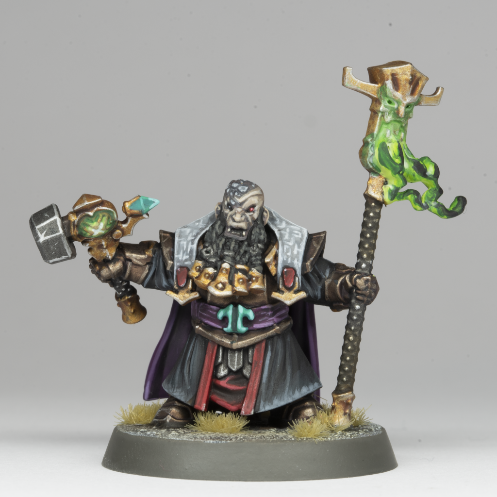 I really enjoyed bringing some jade tones into this model, which isn’t a colour I’ve used much elsewhere in the range so far. I think it suggests that the priesthood of the Helsmiths follows a different set of devotional practices to the Daemonsmiths, and have found meaning in different materials as a result.