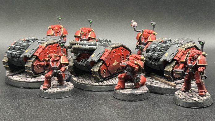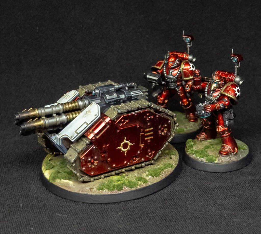 realSnice: This was the first unit (beyond a tester) for my up and coming Blood Angels force (expect a dedicated series of articles later on). I followed the same sub assemblies as Soggy for the rapiers, which is another reason to magnetize the weapons as you can’t build the Rapiers without having the guns inside the carriage. I did stick with gluing my shoulder pads and heads but that was due to how I’m painting infantry in this army, if I was going for a different shoulder pad color, I would do the same. In my upcoming article I’ll have a space dedicated to my paint scheme to keep an eye out for that. As a teaser, enjoy my photos below.