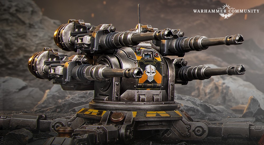 These lil’ guys have a weird history. Tracing their origins back to the earliest days of Imperial armour, they’ve been a strangely consistent appendix unit. A classic Forge World resin kit available alongside Imperial Armour Volume 1 (2003) they were originally described as portable rearguard assets employed by Imperial forces, defending vital supply routes. They originally came in two flavours (Heavy Bolter or Lascannon) with Armour Values (like vehicles and dreads), automated firing modes (either Point Defence or area suppression) and a terrible BS of 2. Eventually these broadened into a Melta variant and an anti-air variant, the Hyperios Air Defence Battery, in Imperial Armour Volume 2 (Second Edition – 2013), but bigger things were yet to come.