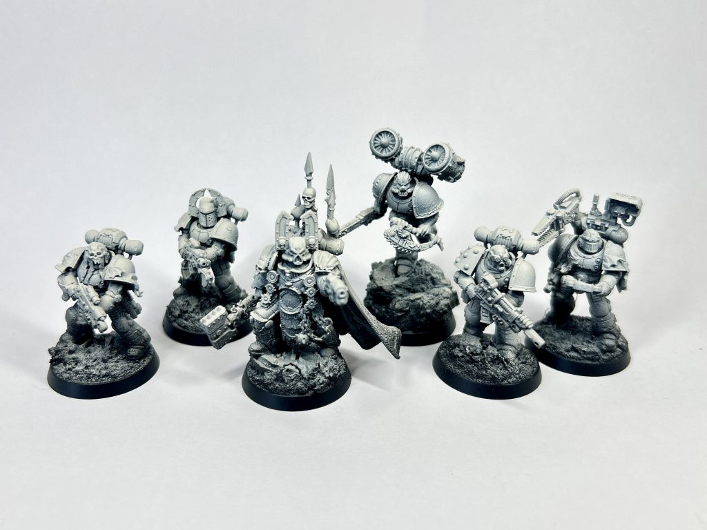 I wasn’t too thrilled about them having the same poses as the MKVI and MKIII kits at first (three-piece leg pose, we meet again), but I totally understand where that comes from, in terms of compatibility with the existing upgrade kits for the Heresy range. It also means I will have to try my hand at building my own MKV armor eventually, by just mixing parts from the same pose across marks. But overall, the kit builds easily and well, and looks solid when built. Bonus points to the one-piece backpacks, which drove me nuts with some of the older plastic Heresy kits. I even mixed in a couple of bits, giving my sergeant a slung bolter from the melee weapons sprue, and a helmet from the old MKII resin kits I had rattling around my bits box.