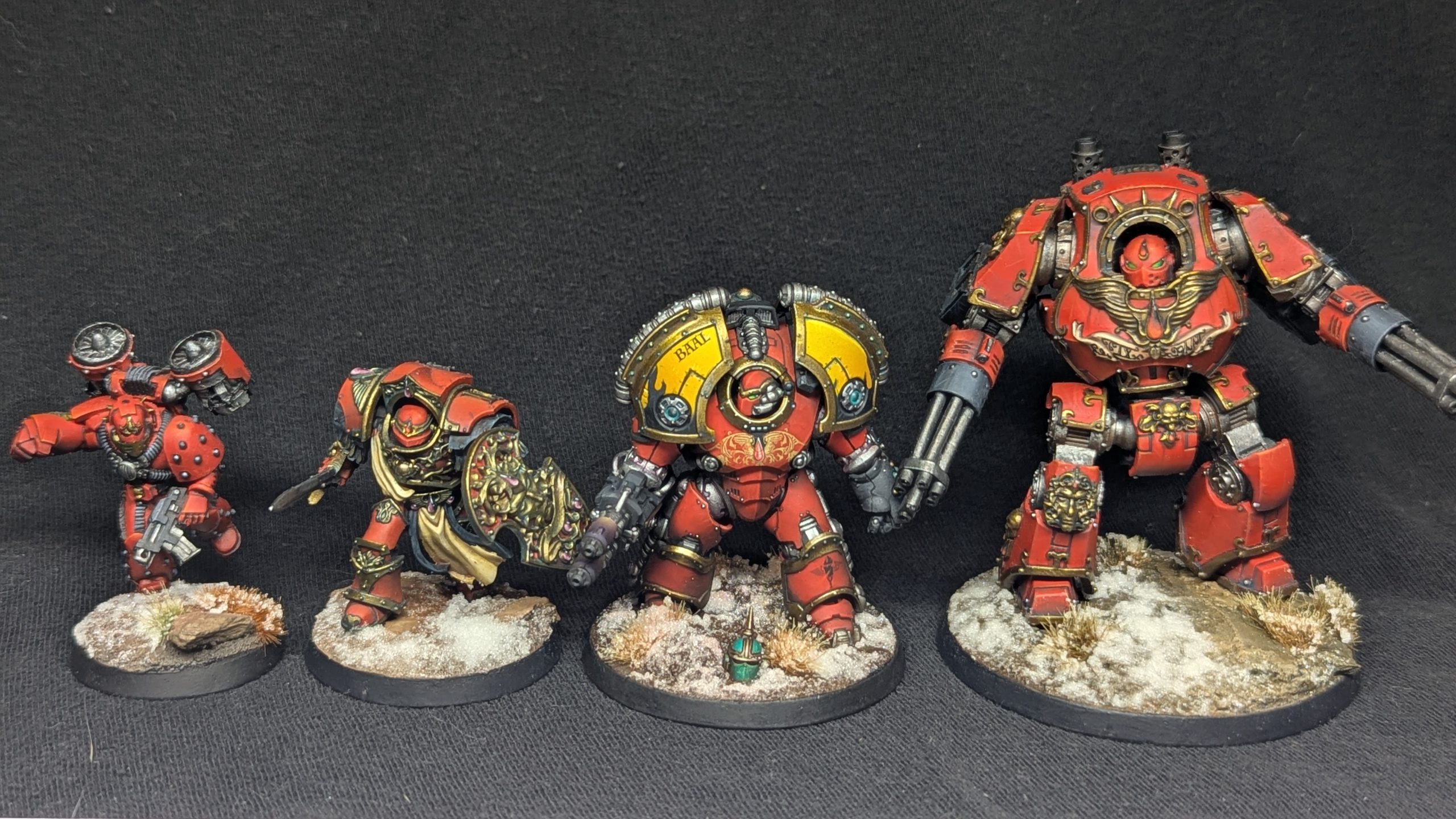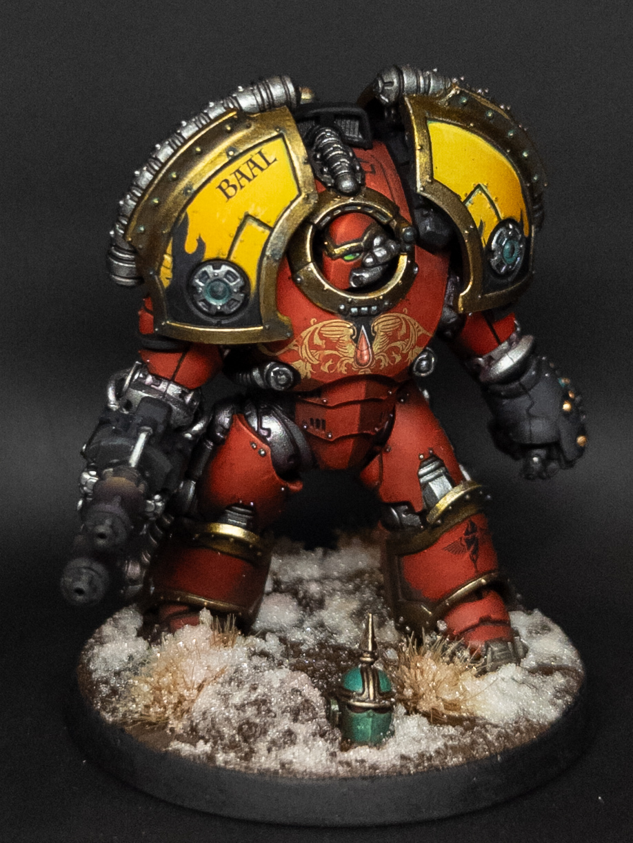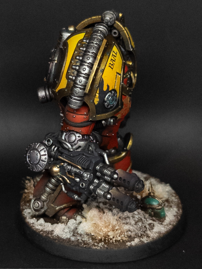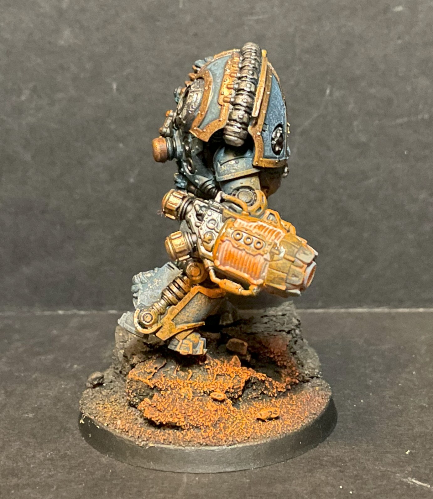 Meltabombed: Prior to this release, Saturnine terminators were definitely not my favorite (that spot is still pretty solidly held by the classic Indomitus pattern…), but I have to say that these have definitely grown on me. From the dumpy egg look of the oversized pauldrons to the stubby “Mega Man or Samus Aran” style plasma bombards, these guys definitely swing to the “charm” side of over-wrought Heresy shenanigans for me. These guys also lend themselves very well to the vintage look I go for with my Blood Angels, as you can see.